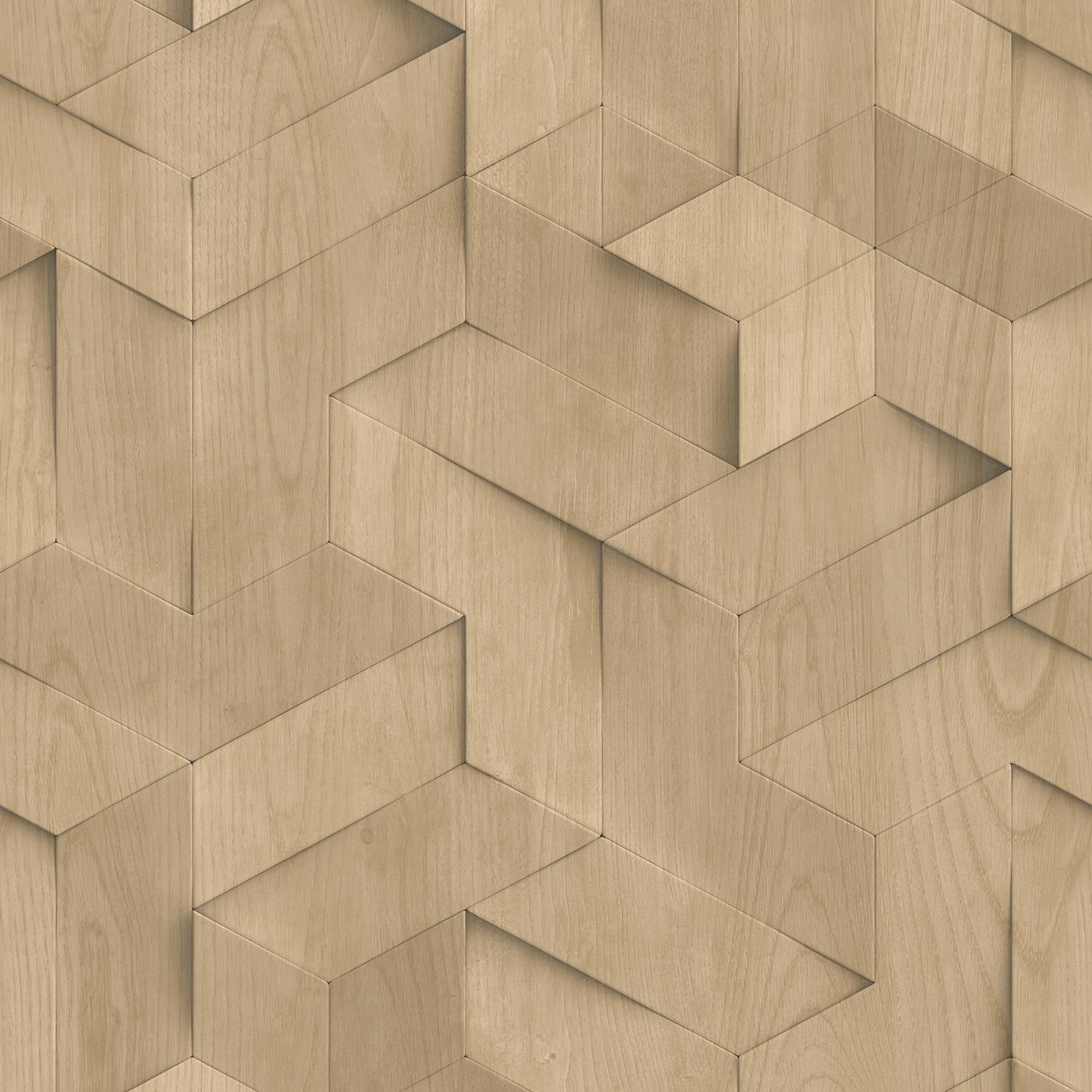 International For Veer Decor Geo Wood Block Illusion Beige Wallpaper (Veer Decor)