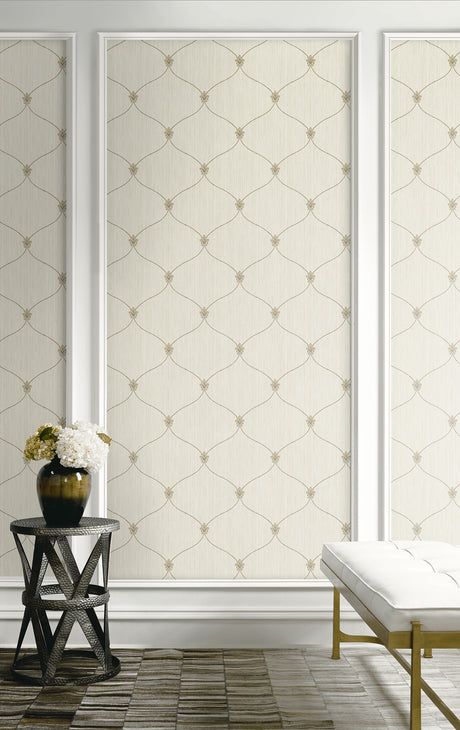 Seabrook Lenox Hill Ogee Black, Metallic Gold, And Off-White Wallpaper