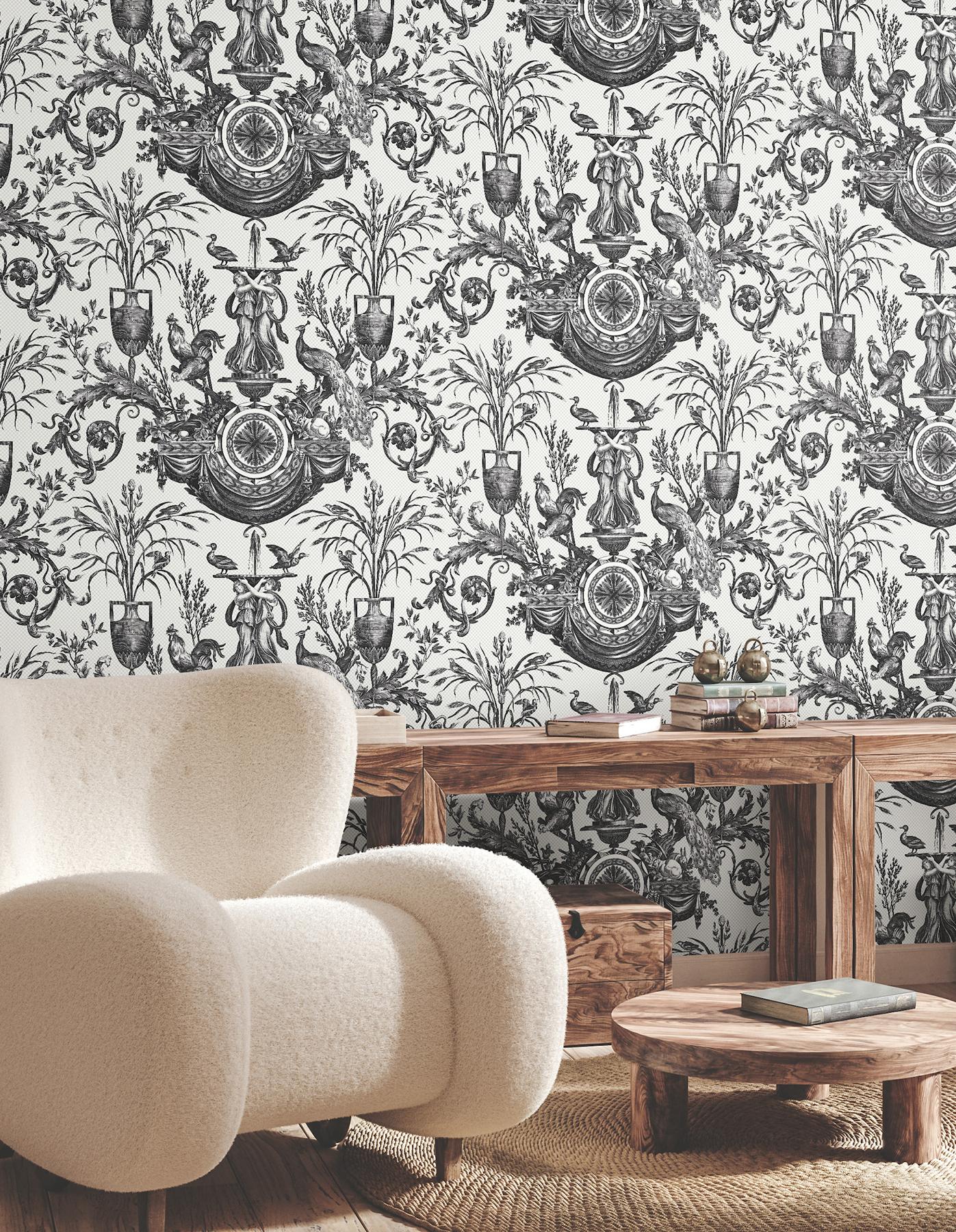 Returns For York Wallcoverings Avian Fountain Toile Black Wallpaper (York Wallcoverings)