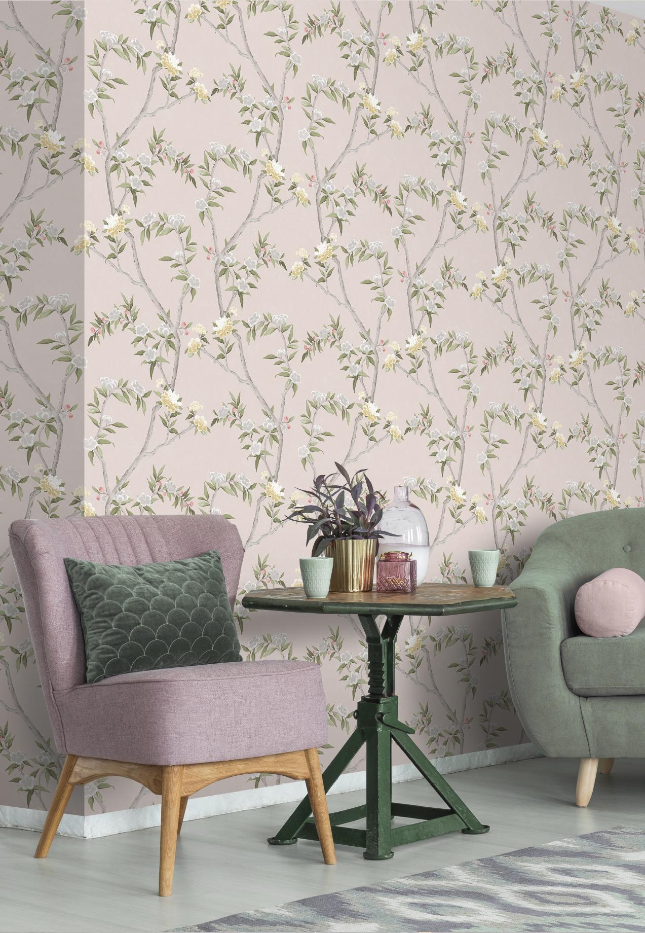 Returns For Galerie 1900-4 Spring Blossom Chinoiserie Pink Wallpaper 1900-4 Pink Wallpaper (Galerie)