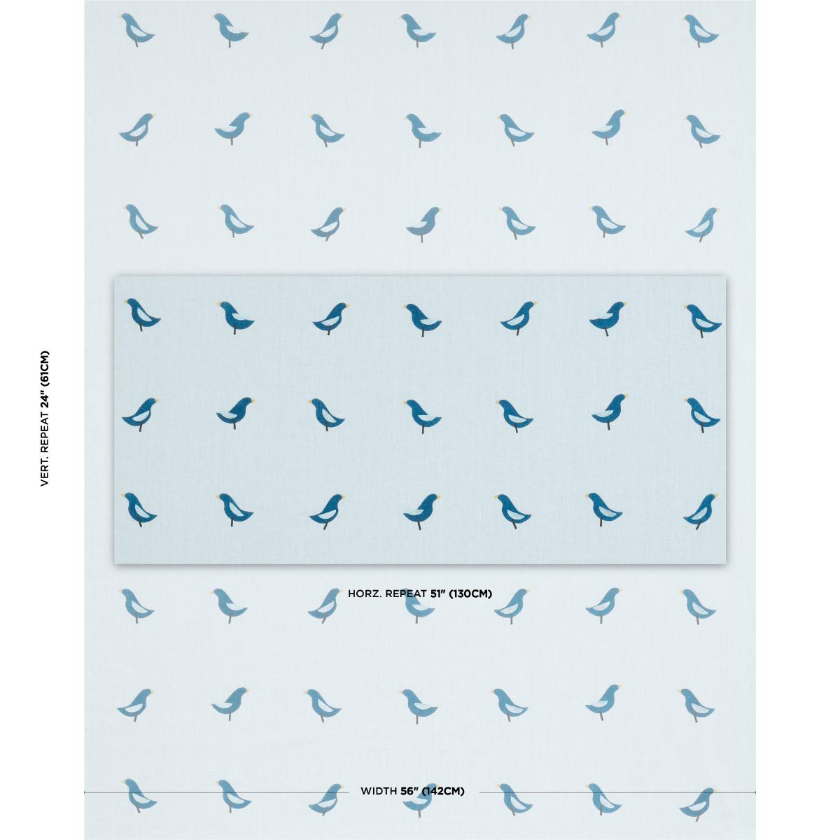 International For Schumacher Birds Hand Block Print Navy On Sky Fabric (Schumacher)