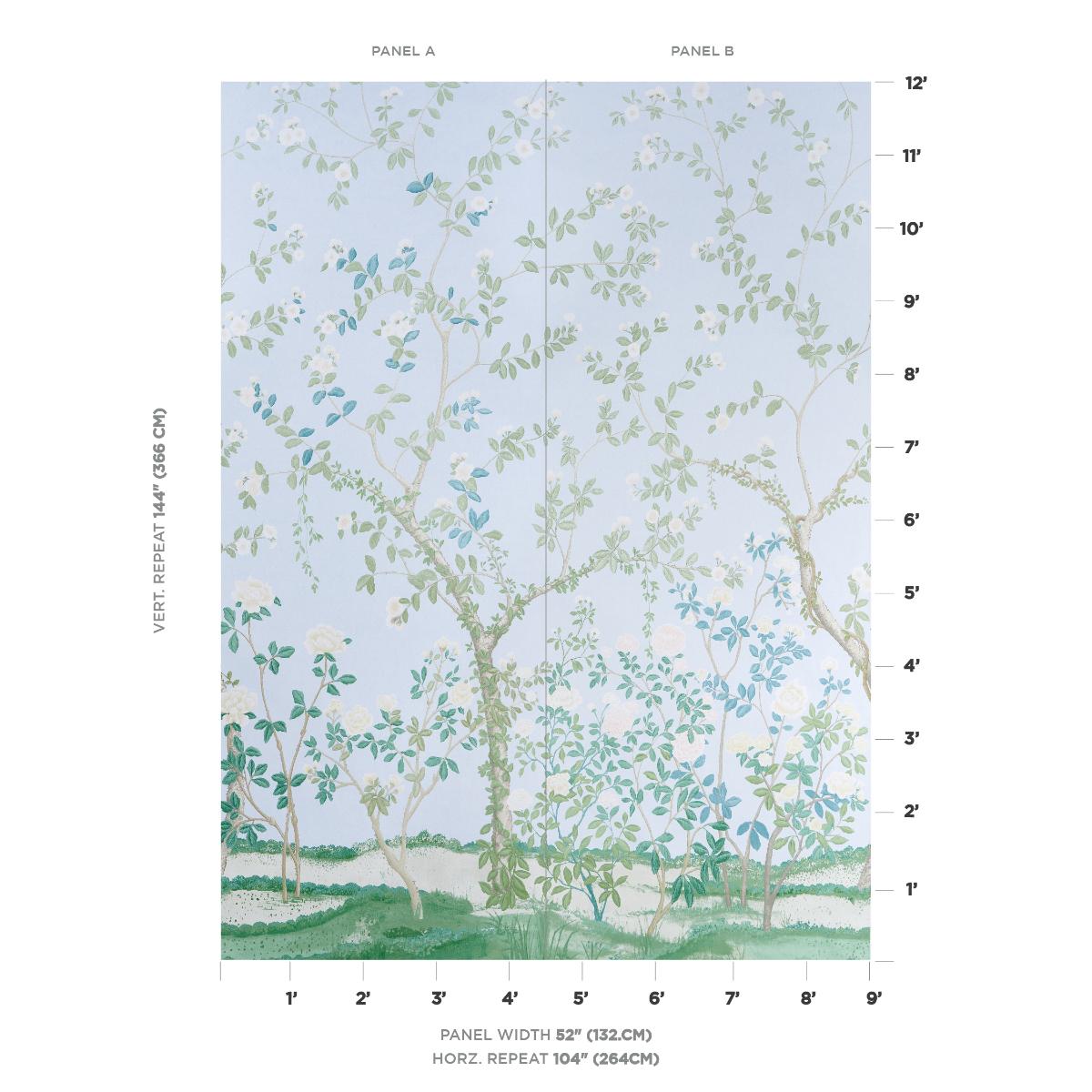 Shipping For Schumacher Madame De Pompadour Panel Set Blue Wallpaper (Schumacher)