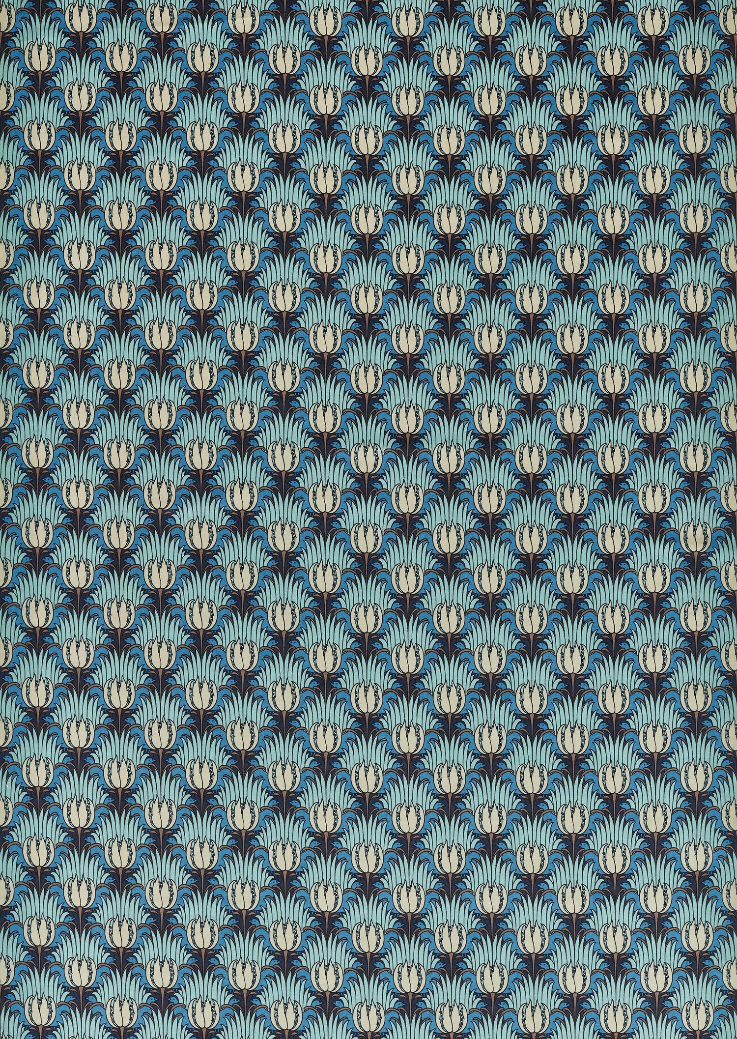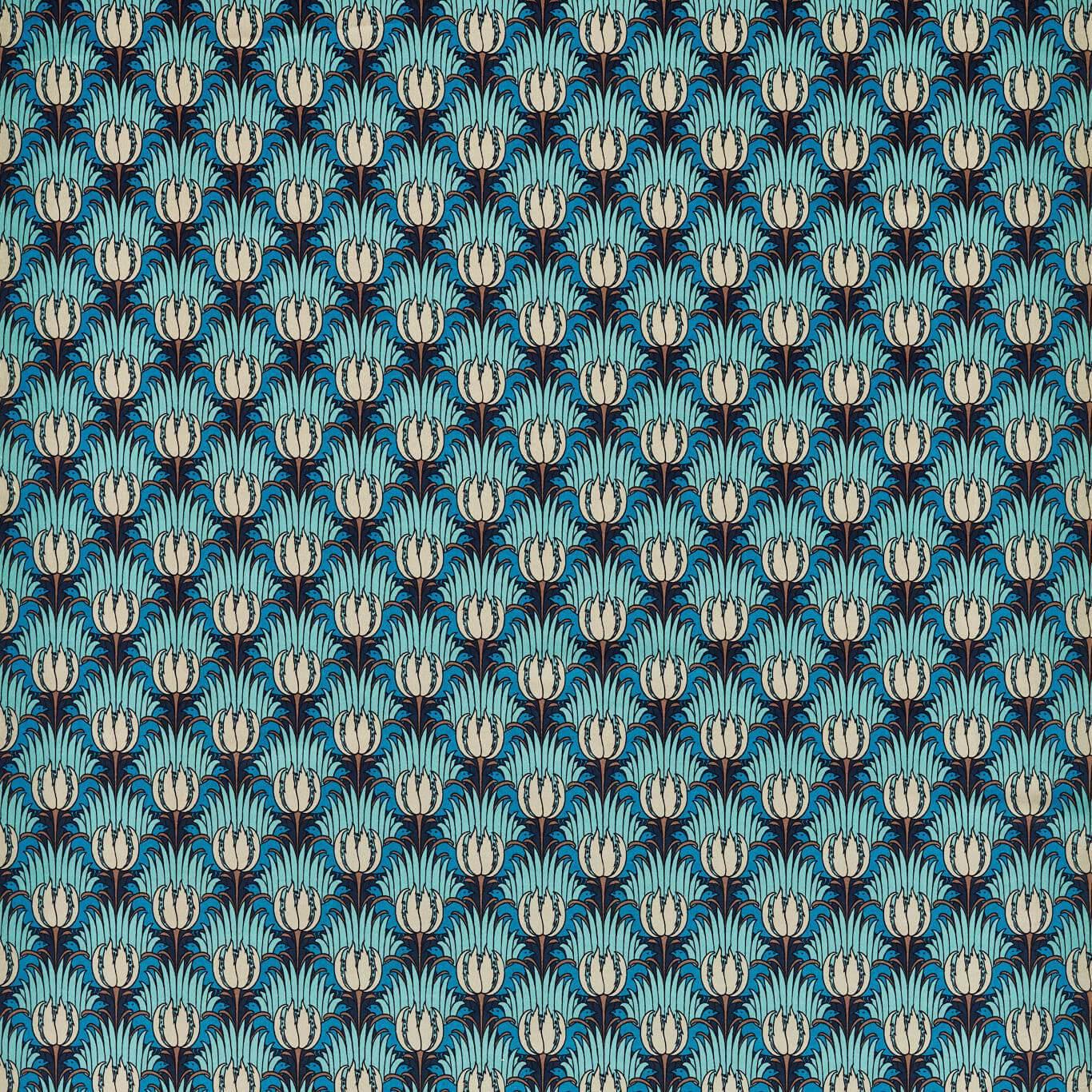 Be honest did you spot the birds at first glance hidden among the foliage? The Tulip & Bird pattern whose form bears all the fresh simplicity of a classic Voysey here undertakes a total colour transformation. This intriguing pattern now features deep gem-like tones reminiscent of the ceramic work of which C.F.A. Voysey was also a noted designer.