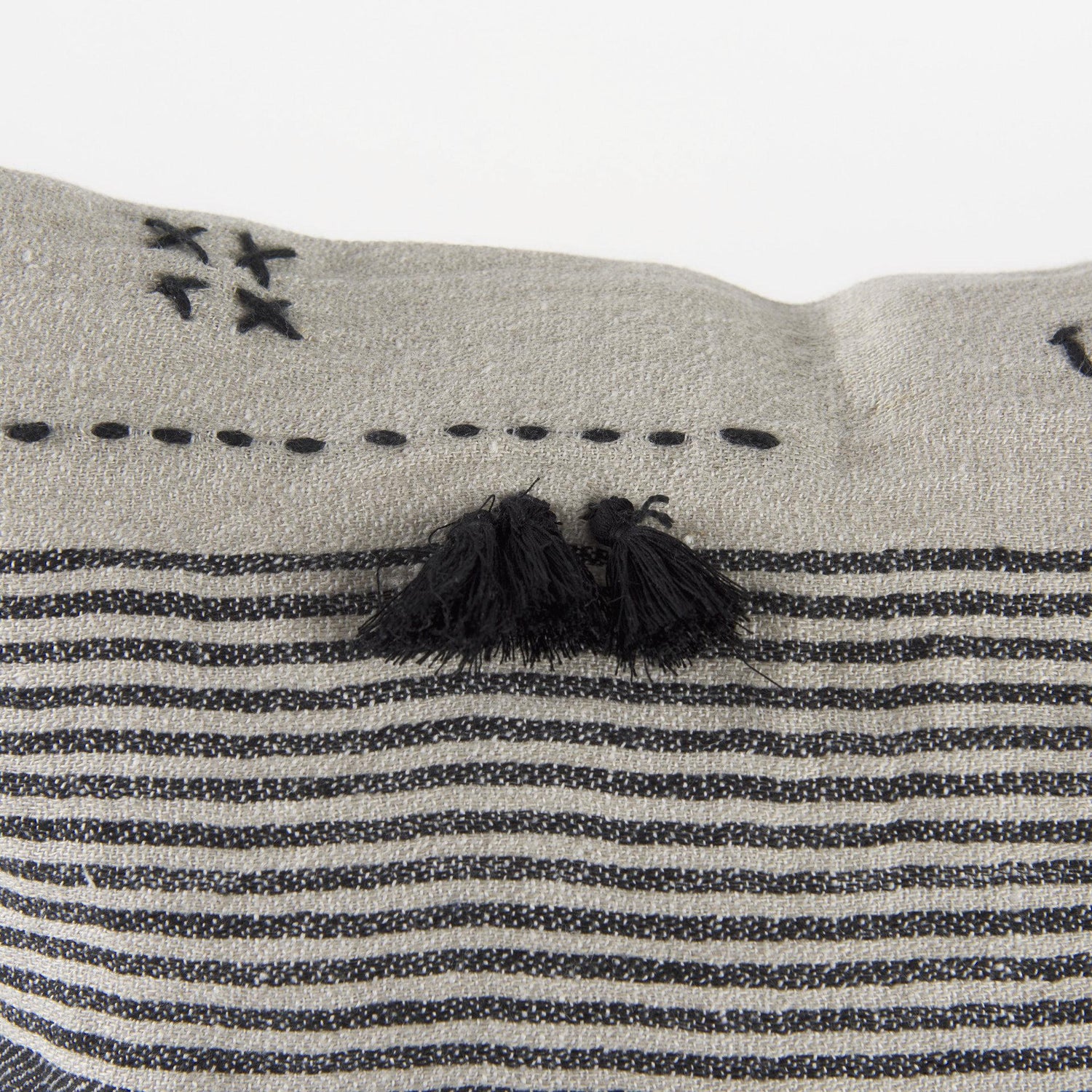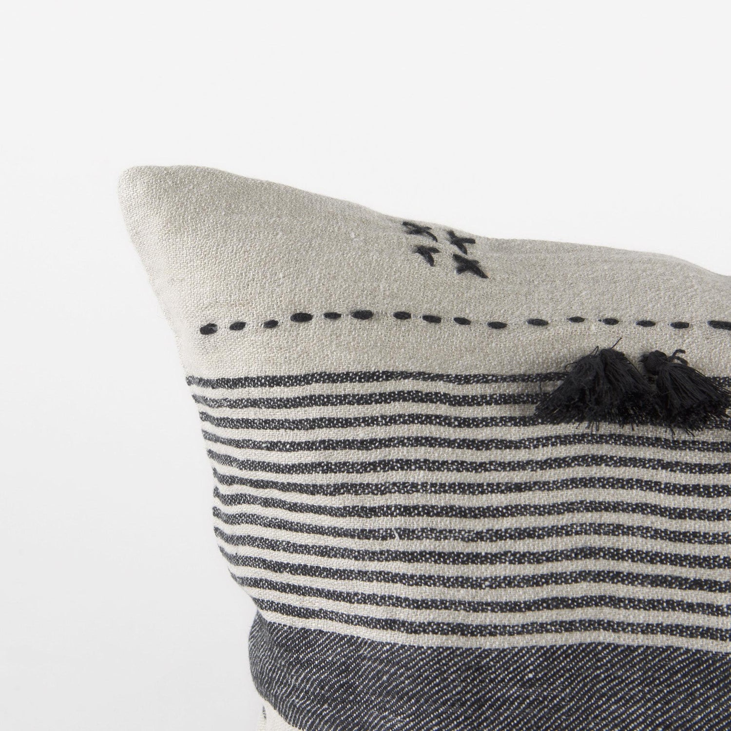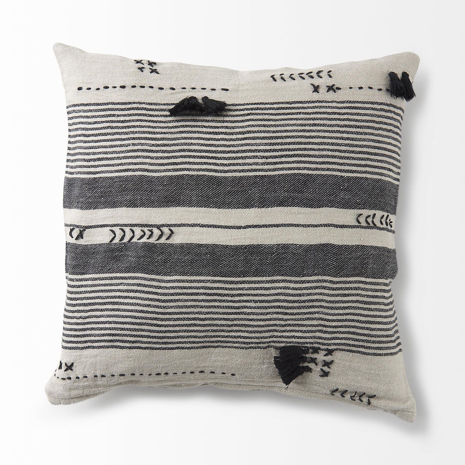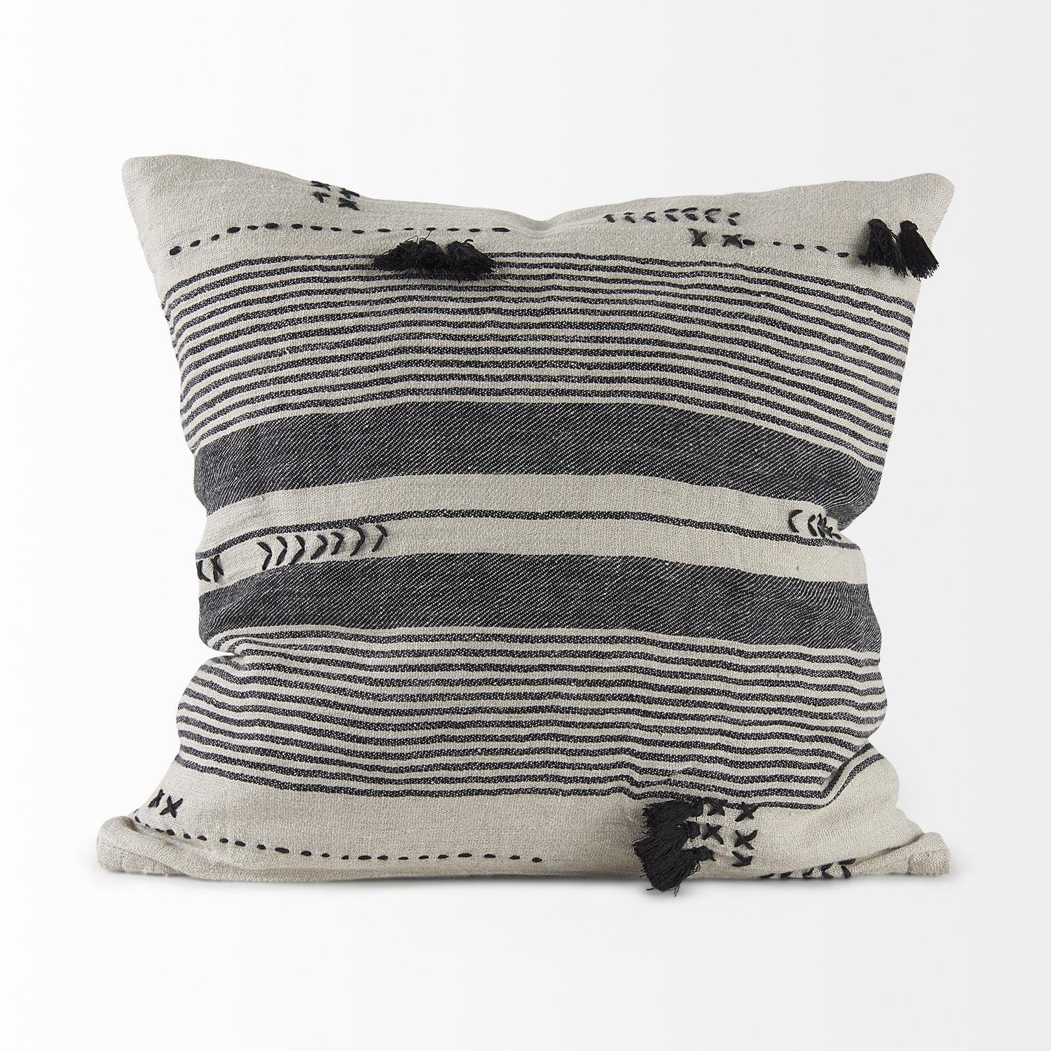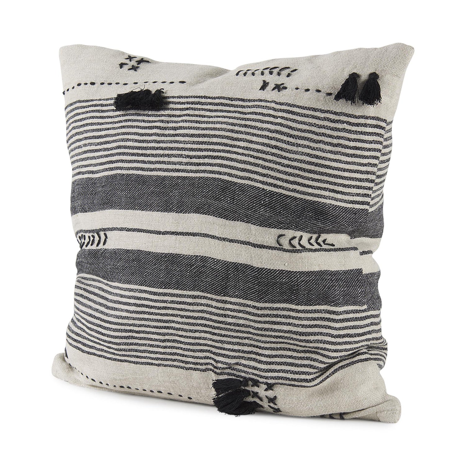 International For Mercana Thalia 18L X 18W Black And Beige Fabric Striped And Fringed Decorative Pillow Cover (Mercana)