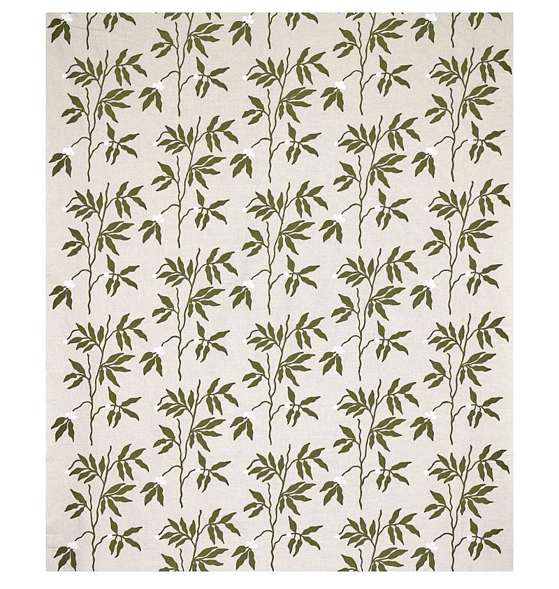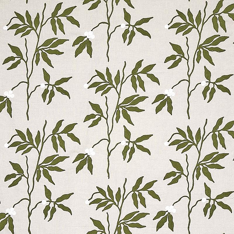 International For Schumacher Lilla Embroidery Olive On Neutral Fabric (Schumacher)