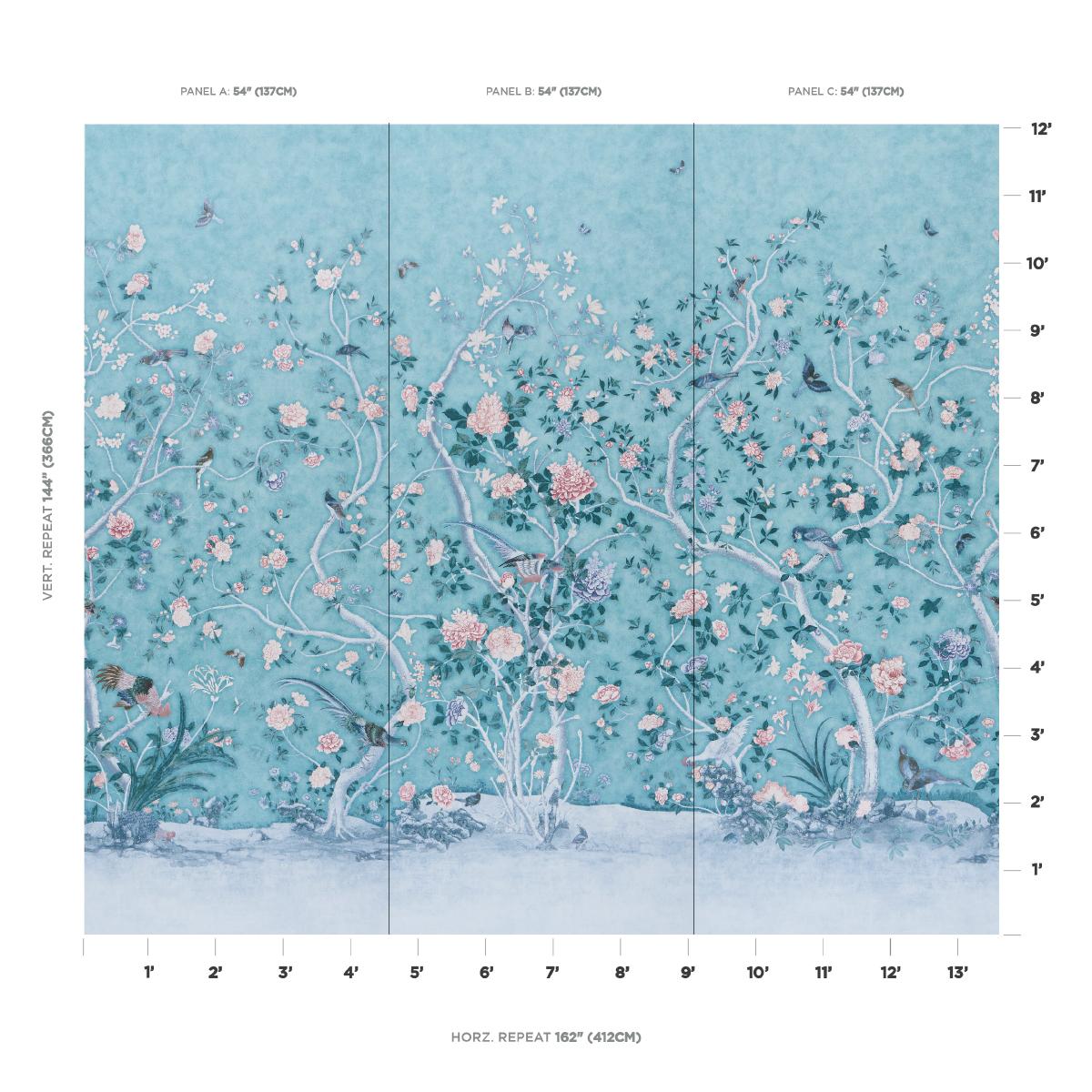 Shipping For Schumacher Les Oiseaux Panel Set Blue Turquoise Wallpaper (Schumacher)