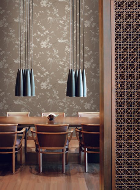 Ronald Redding Designs Bird & Blossom Chinoserie Brown Wallpaper