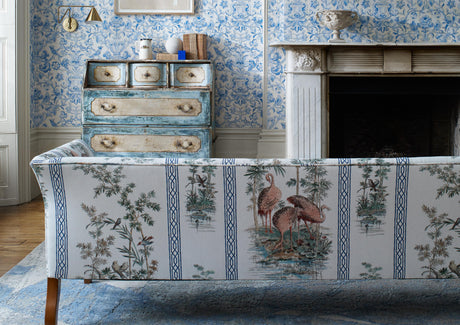 Zoffany Stork & Thrushes Tuscan Pink/ Cobalt Fabric