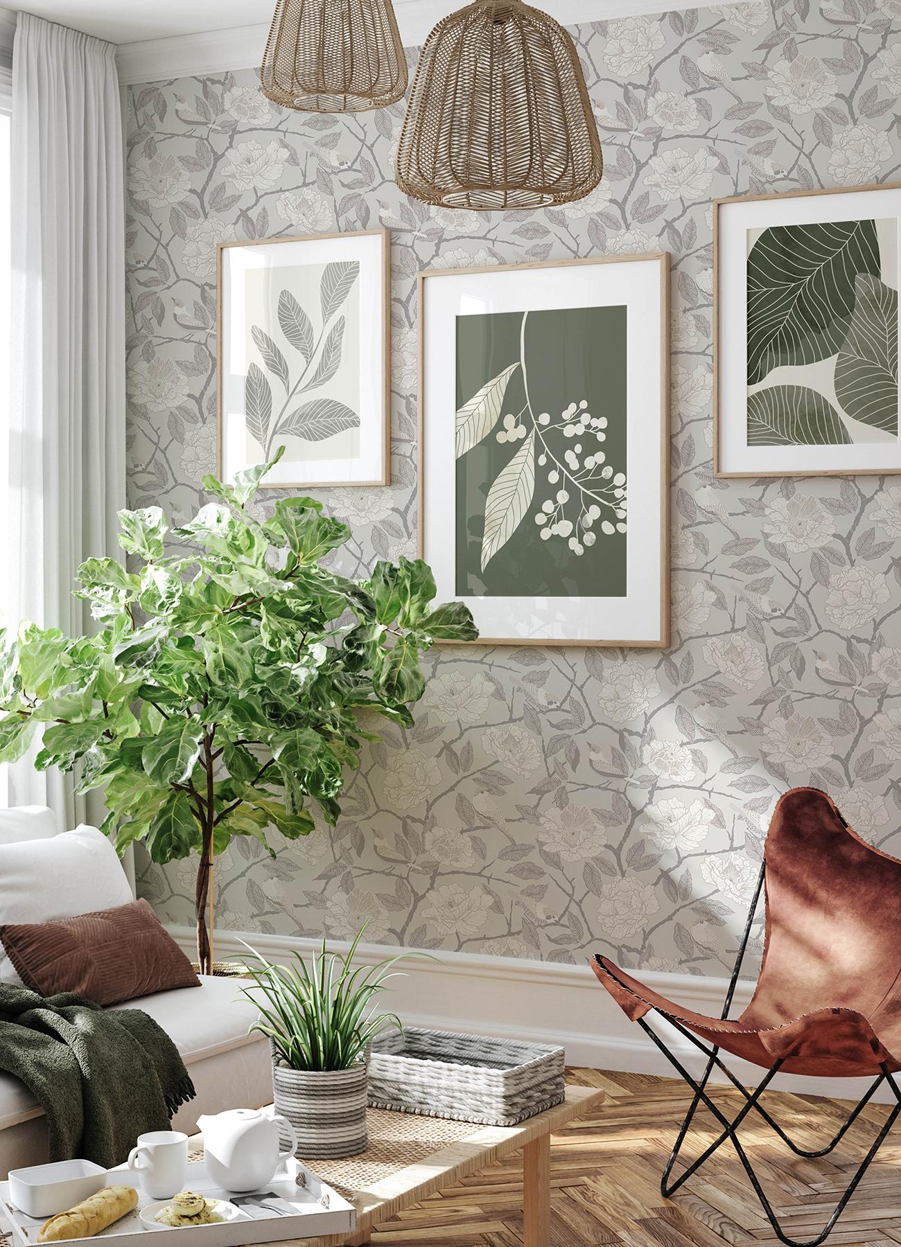 International For A-Street Prints Botanica Flowers Grey Wallpaper (A-Street Prints)
