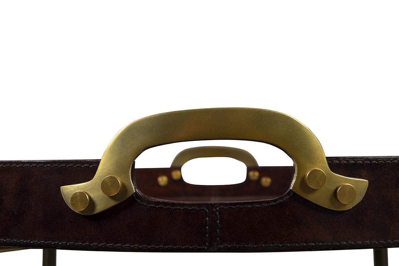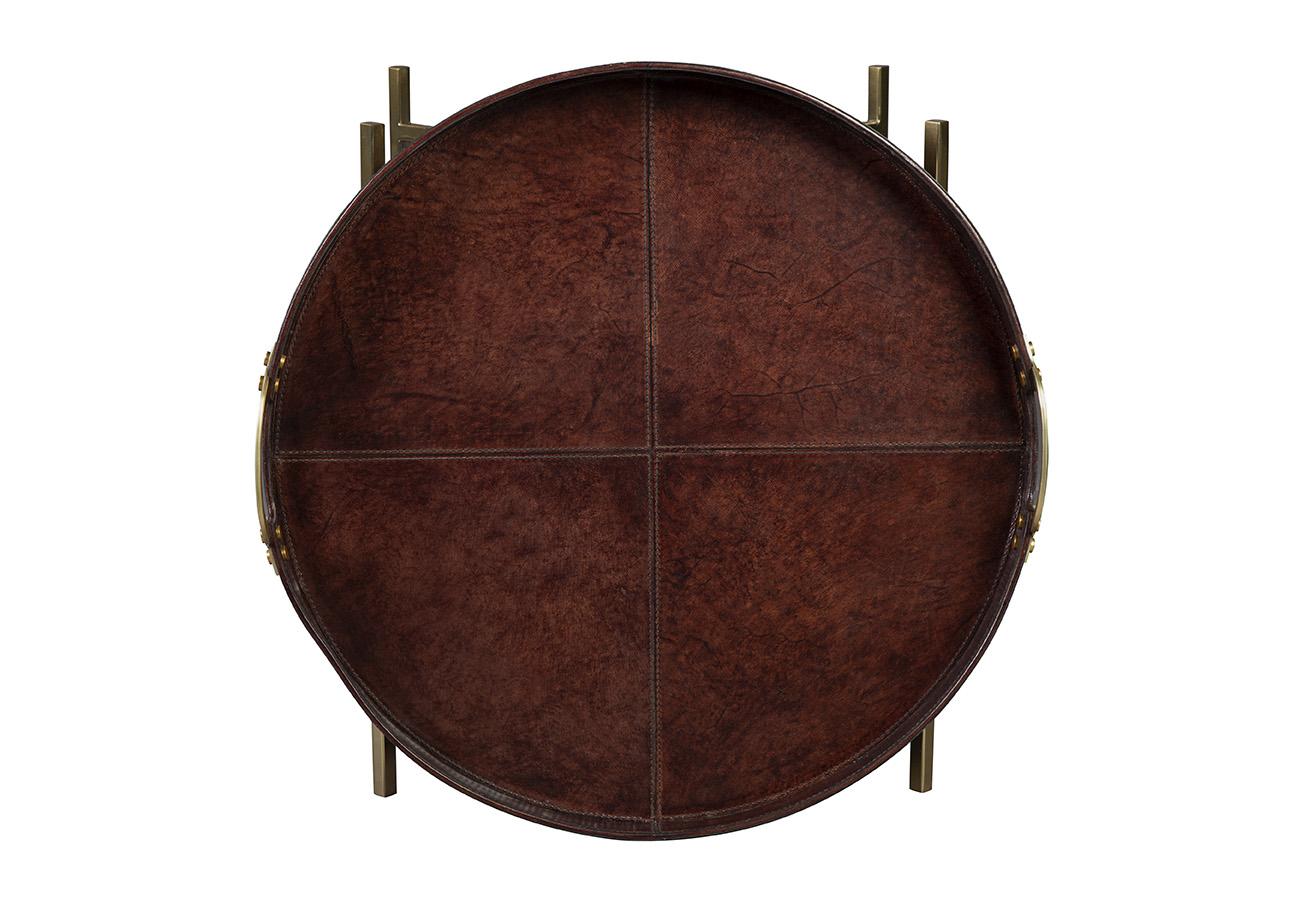 The tables sleek metal base provides a sturdy foundation, ensuring stability and longevity. Paired with a removable leather tray, this piece effortlessly transitions from serving guests in style to functioning as a chic side table, adapting to your ever-changing needs with ease.