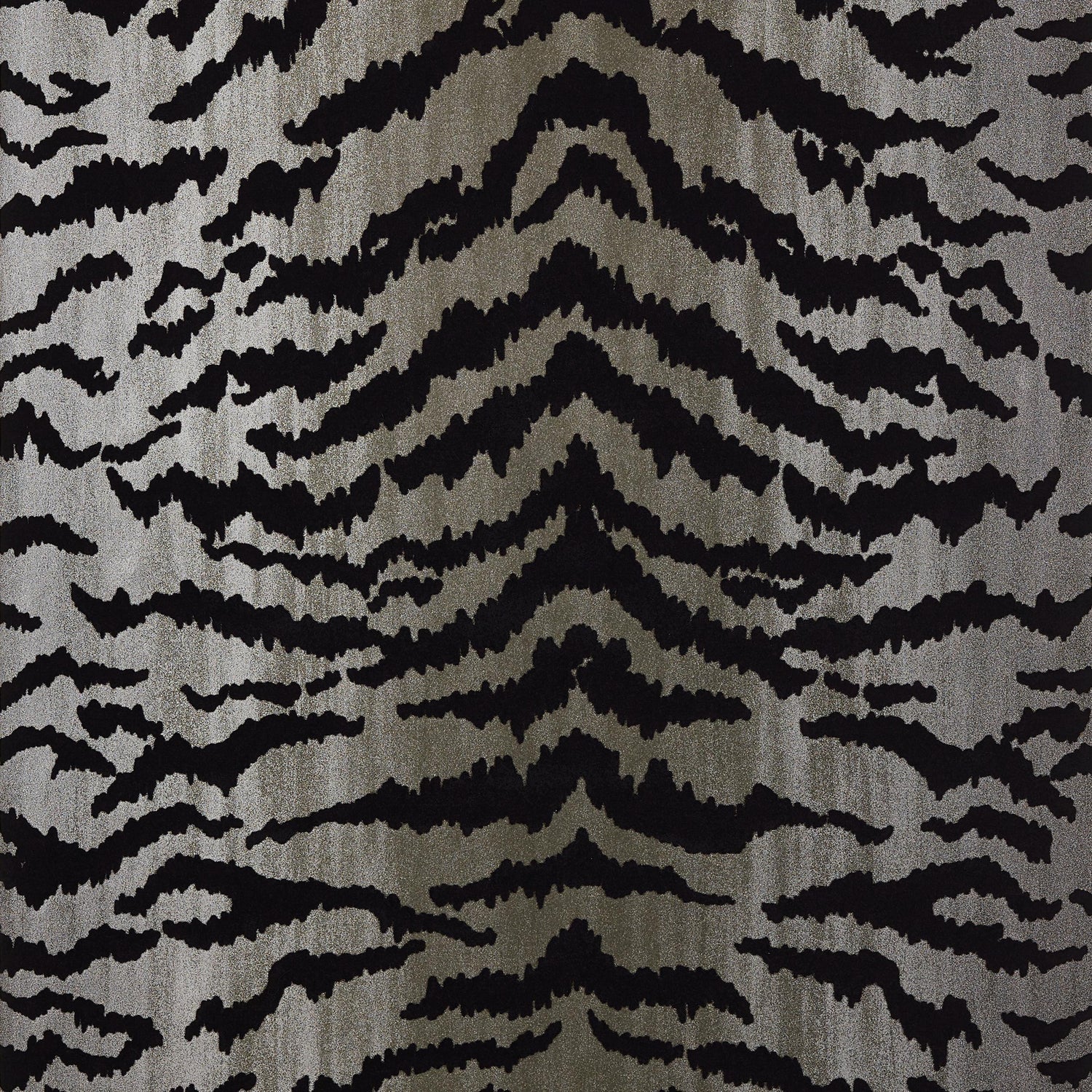 Tiger Flock Black On Metallic Silver Wallpaper