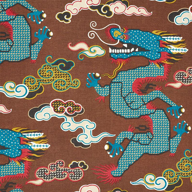 International For Schumacher Magical Ming Dragon Brown Fabric (Schumacher)