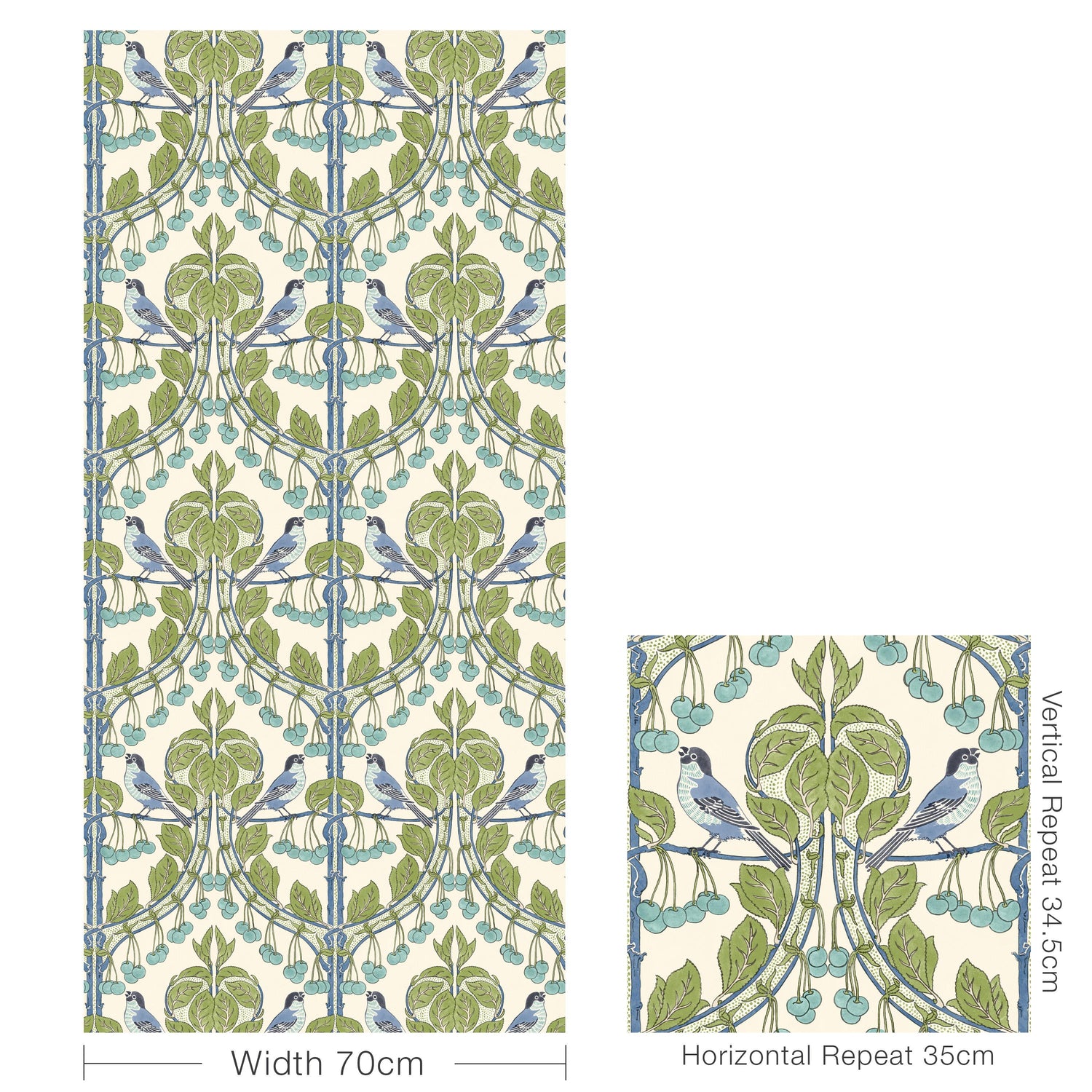 Policy For G P & J Baker Birds & Cherries Green/Blue Wallpaper (G P & J Baker)