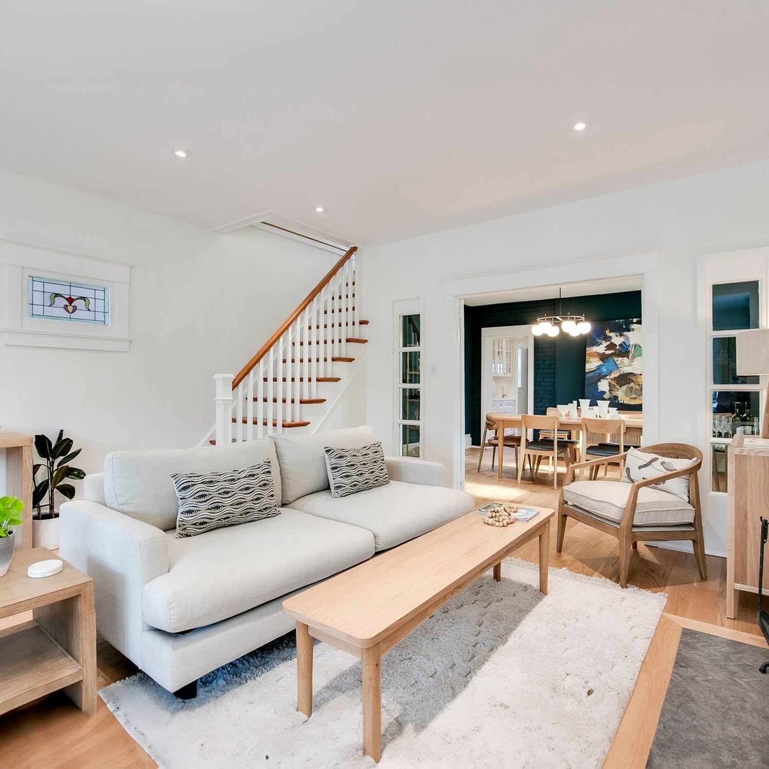 Reversible feathersoft seat cushions for maximum comfort. Solid hardwood frame for durability. Sinuous "no-sag" springs keep it looking new for years