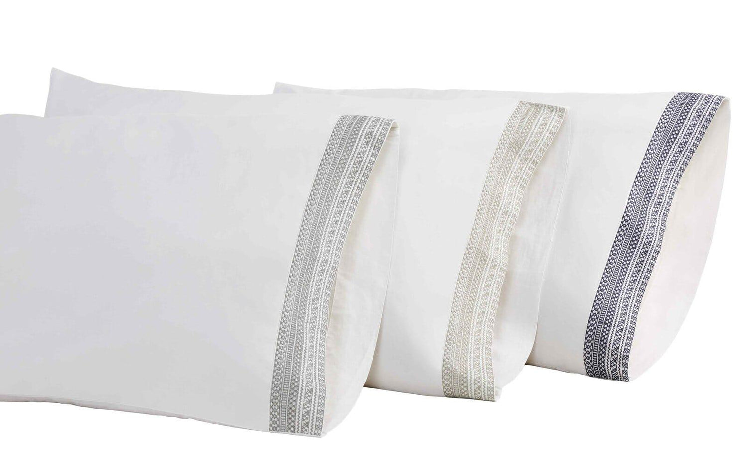 International For Orchids Lux Olivia Solid Color & Embroidery White/ Navy 20 X 32 Pillowcase (Orchids Lux)