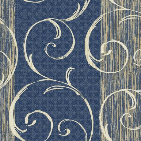 Seabrook Notting Hill Prussian Blue, Metallic Gold, And Off-White Wallpaper