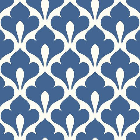 Seabrook Faravel Geo Prussian Blue And Off-White Wallpaper