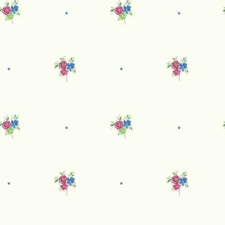 Seabrook Little Posy Raspberry And Prussian Blue Wallpaper
