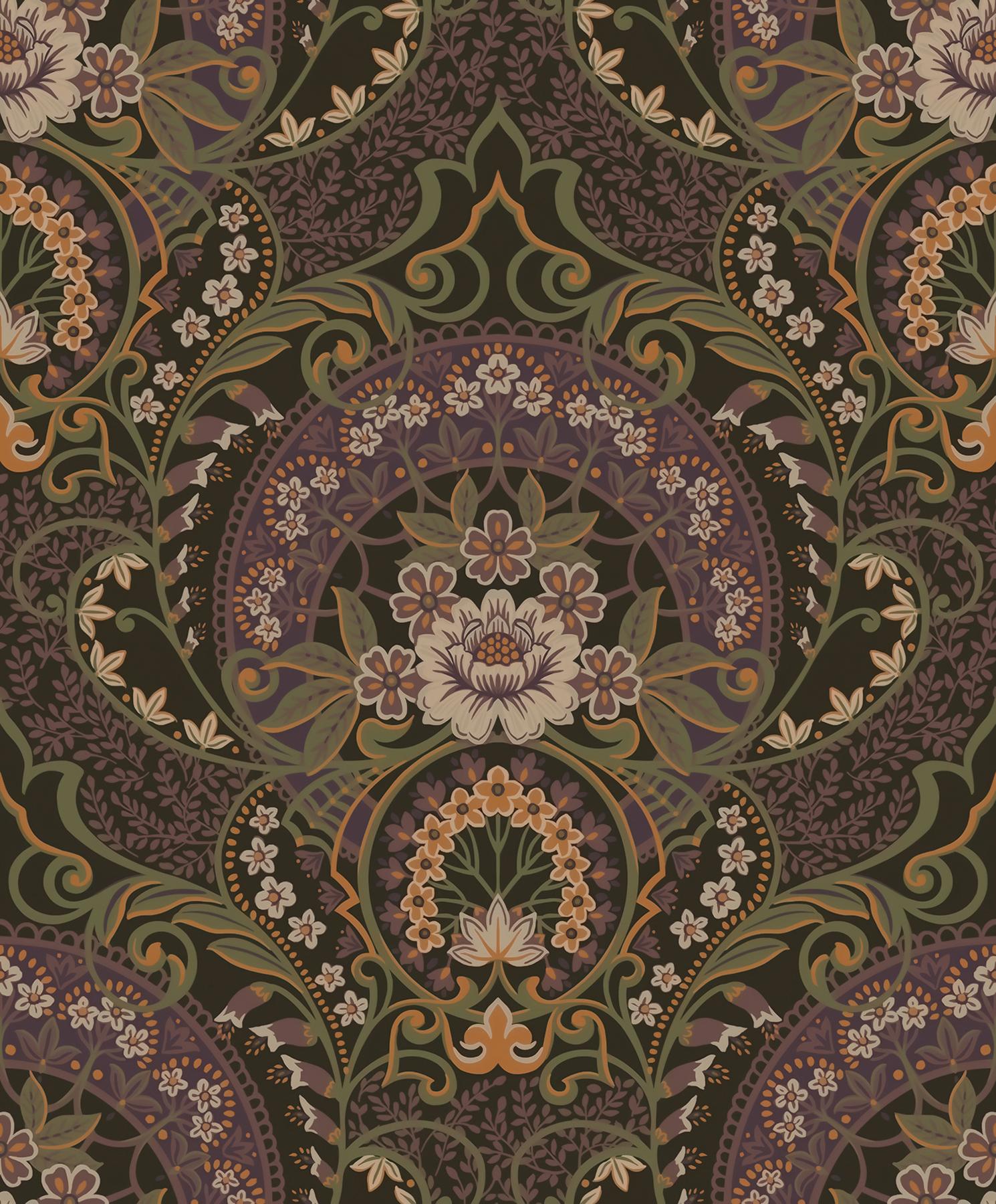 International For Brewster Home Fashions Eijffinger Posy Damask Chocolate Coral Wallpaper (Brewster Home Fashions)