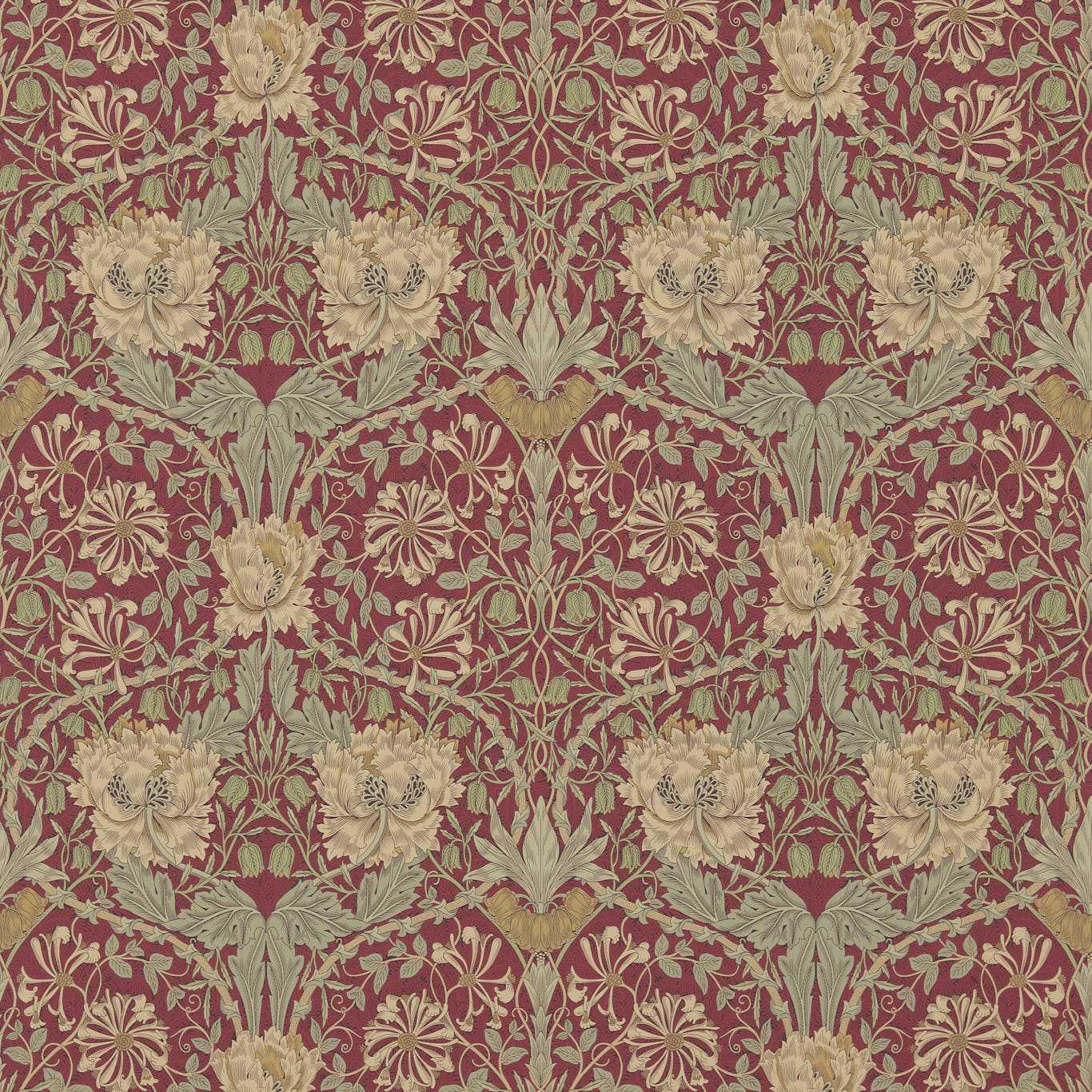 Policy For Morris & Co Honeysuckle & Tulip Red/Gold Wallpaper (Morris & Co)