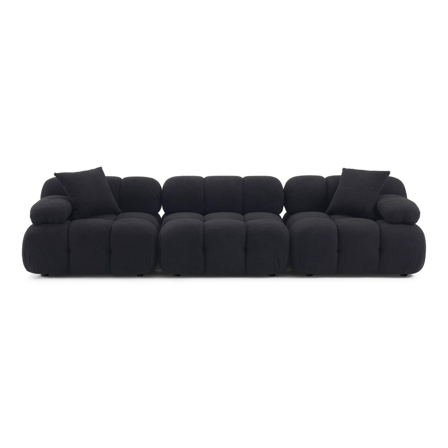 Product Dimensions: 118.2"W x 39.4"D x 31.2"H Ultra-soft vegan shearling upholstery Pillowy silhouette with deep hand-tufted design Modular design allows for endless configuration possibilities - create your dream piece for your space Detached cushion can be placed on either side to create a right or left corner Fabric swatch available upon request Skillfully Handmade