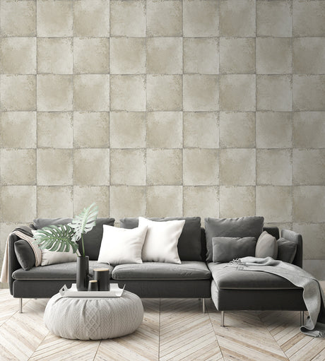Seabrook Attersee Squares Tan, Beige, And Ice Wallpaper
