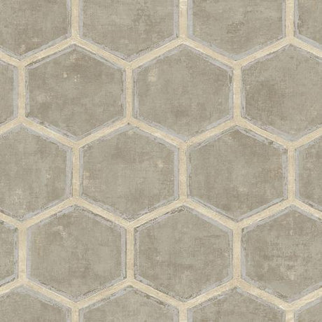 Seabrook Melrose Gray, Tan, And Metallic Gold And Silver Wallpaper