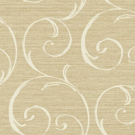 Seabrook Notting Hill Scroll Tan And Off-White Wallpaper