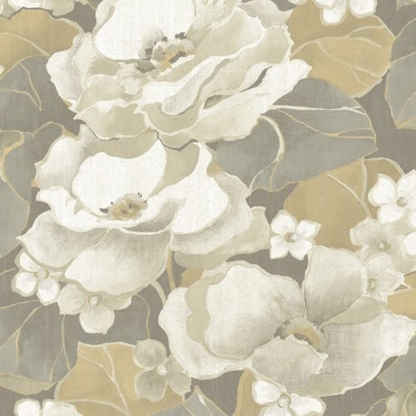 Seabrook Graphic Floral Metallic Champagne And Off-White Wallpaper