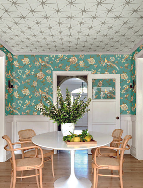 Schumacher Coconut Grove Aqua & Tan Wallpaper