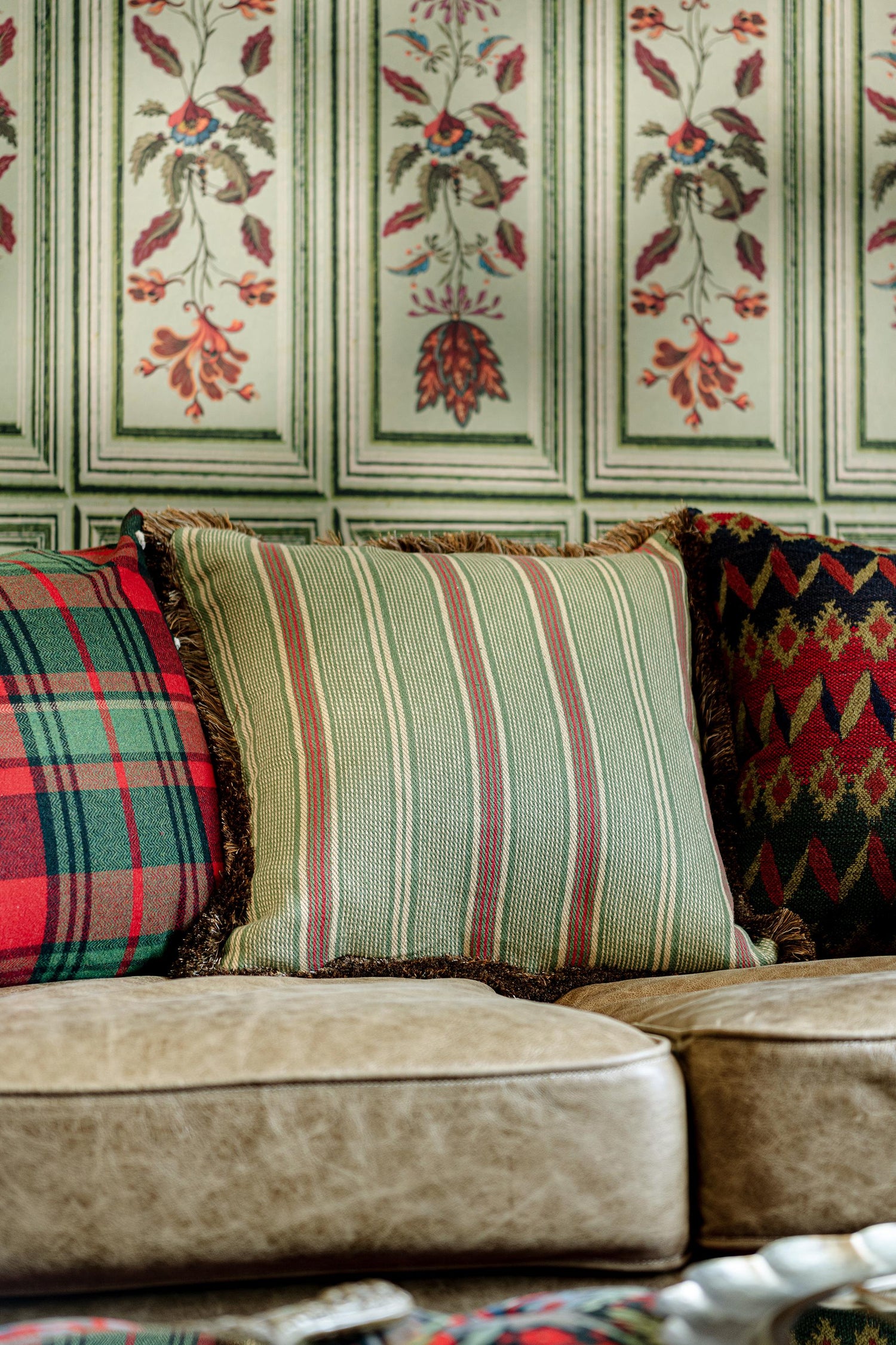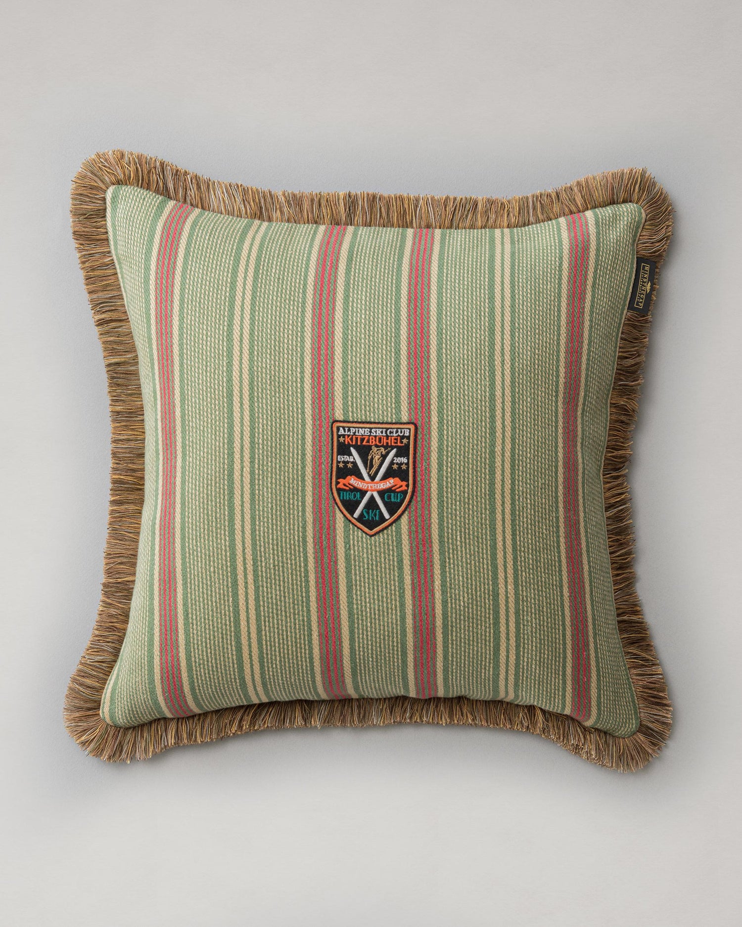 International For Mindthegap Tyrolean Stripes Green, Red, Taupe Pillow (MindTheGap)