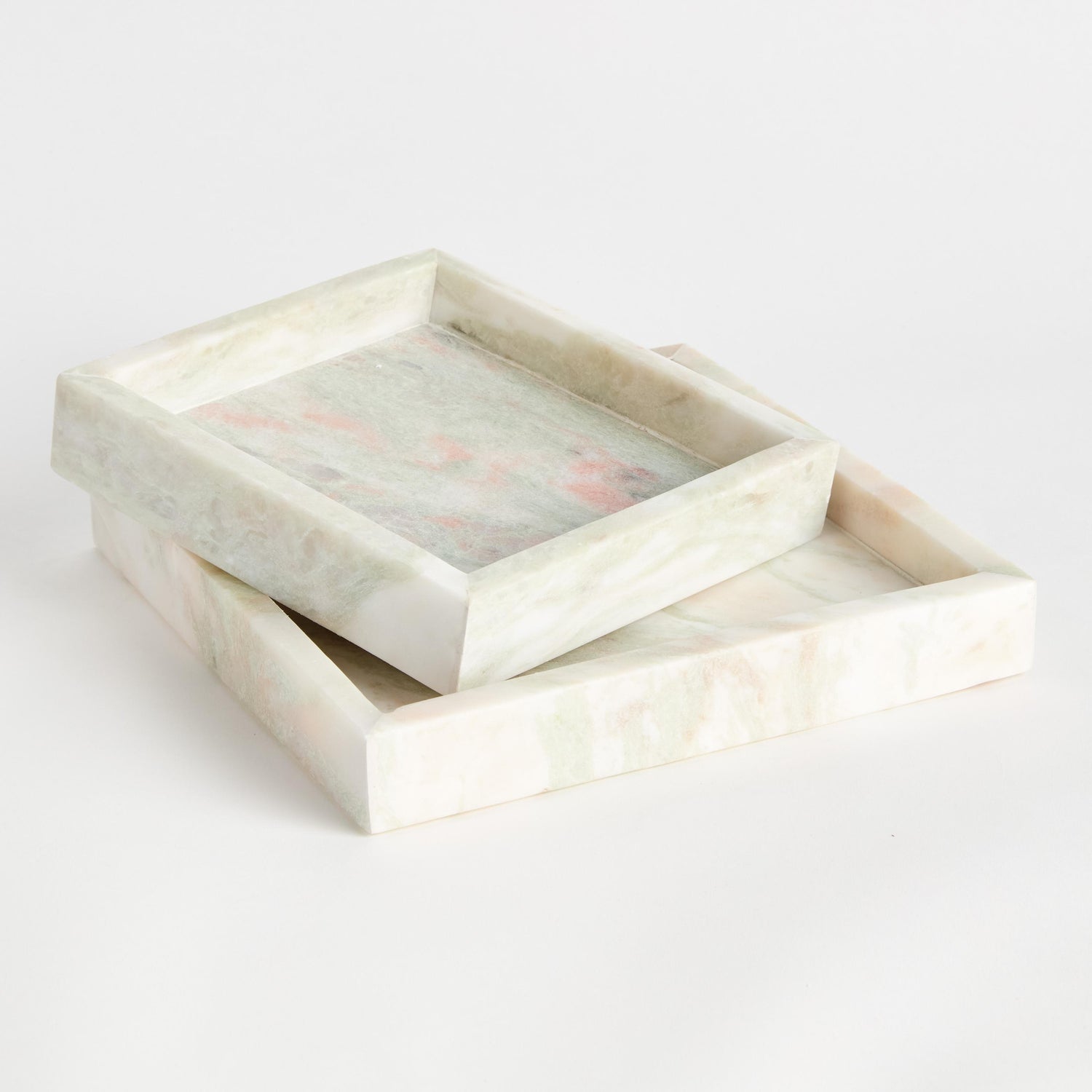 International For Napa Green/White Marble Johanna Square Marble Trays Small, Set Of 2 (Napa)