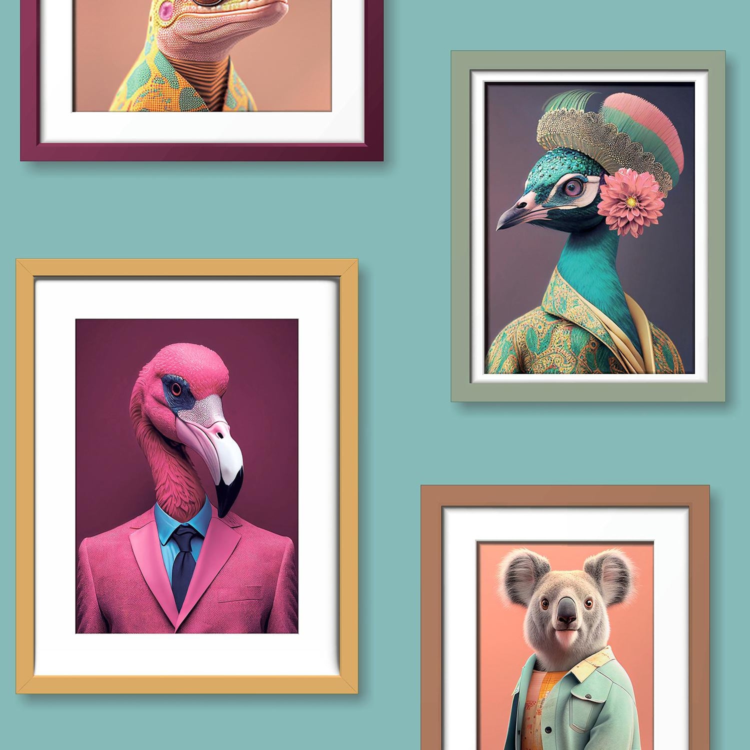Returns For Veer Decor Funky Animal Portraits Green Ground Wallpaper (Veer Decor)