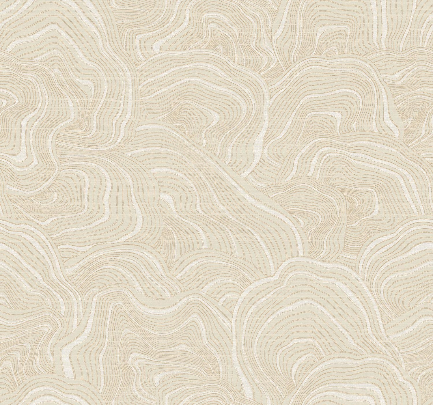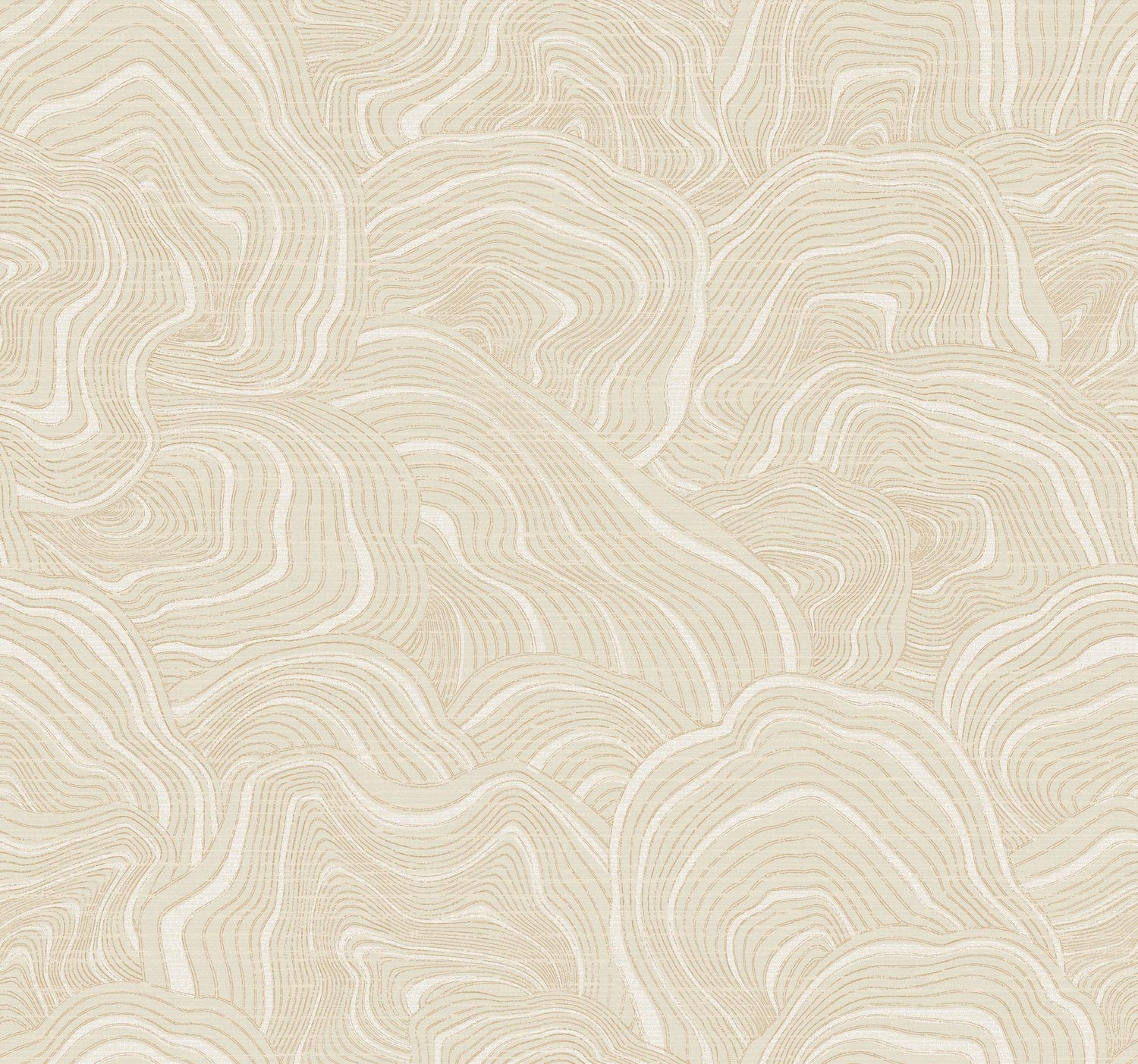 Geodes' stratified layers are tipped with metallic to create a field of mushrooming shapes that reflect light with warmth and elegance, shown in creamy off-white and gold metallic. This Geodes Wallpaper measures approximately 27 inches wide by 27 feet long, measuring approximately 60.8 square feet per roll. The distinction of timeless style.