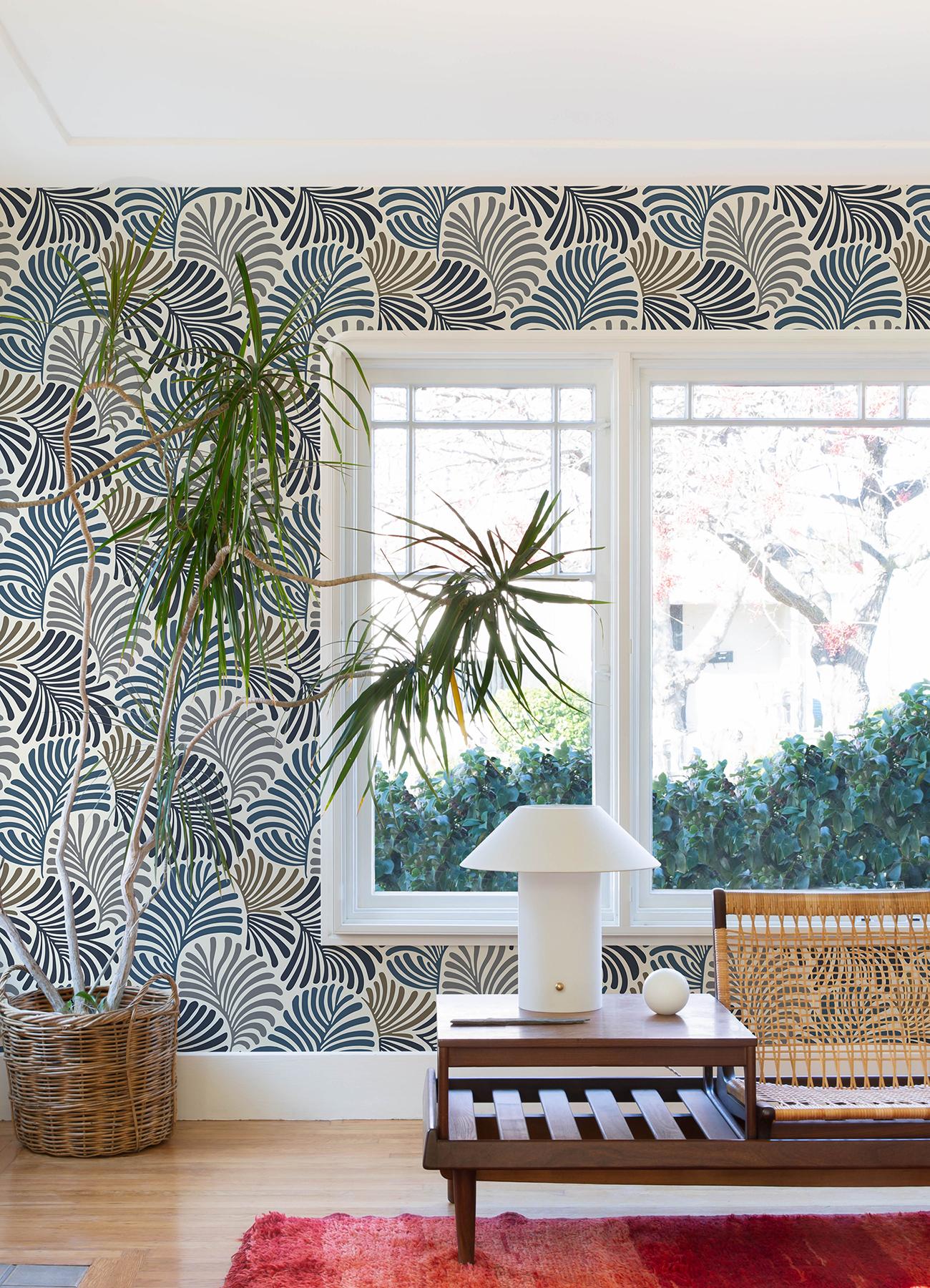 International For A-Street Prints Scott Living Iii Leaves Dark Blue Wallpaper (A-Street Prints)