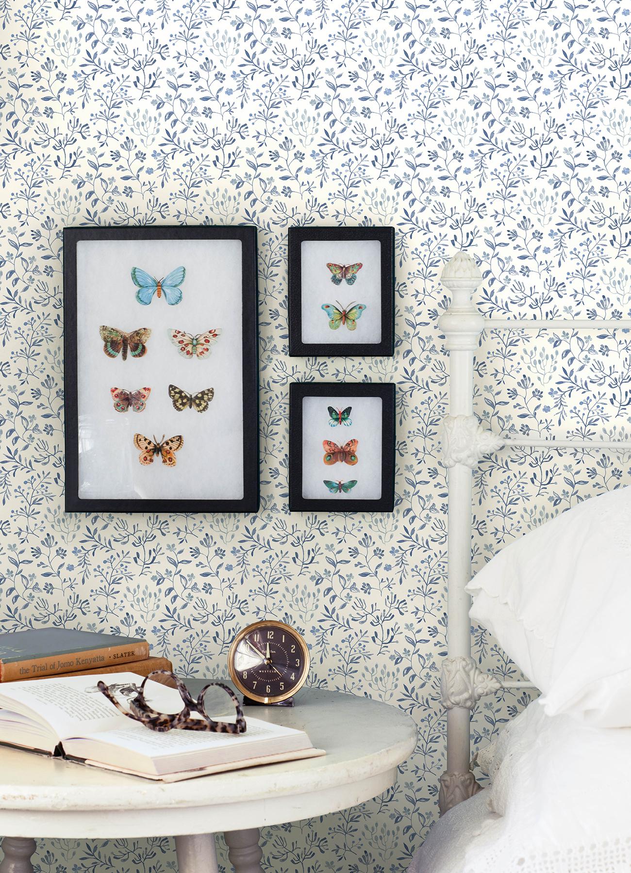 Returns For Brewster Home Fashions Chesapeake Kinfolk Flowers Blue Wallpaper (Brewster Home Fashions)