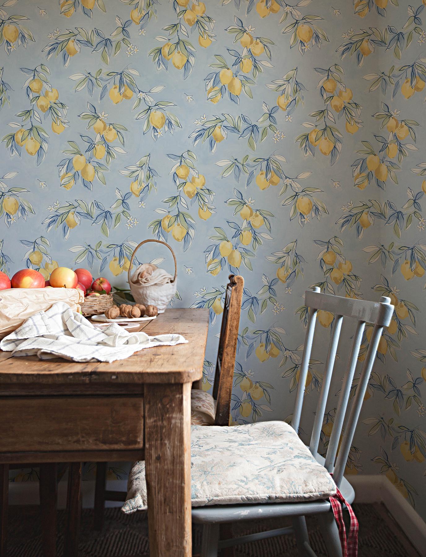 International For Brewster Home Fashions Chesapeake Wildflower Lemonade Citrus Light Blue Wallpaper (Brewster Home Fashions)