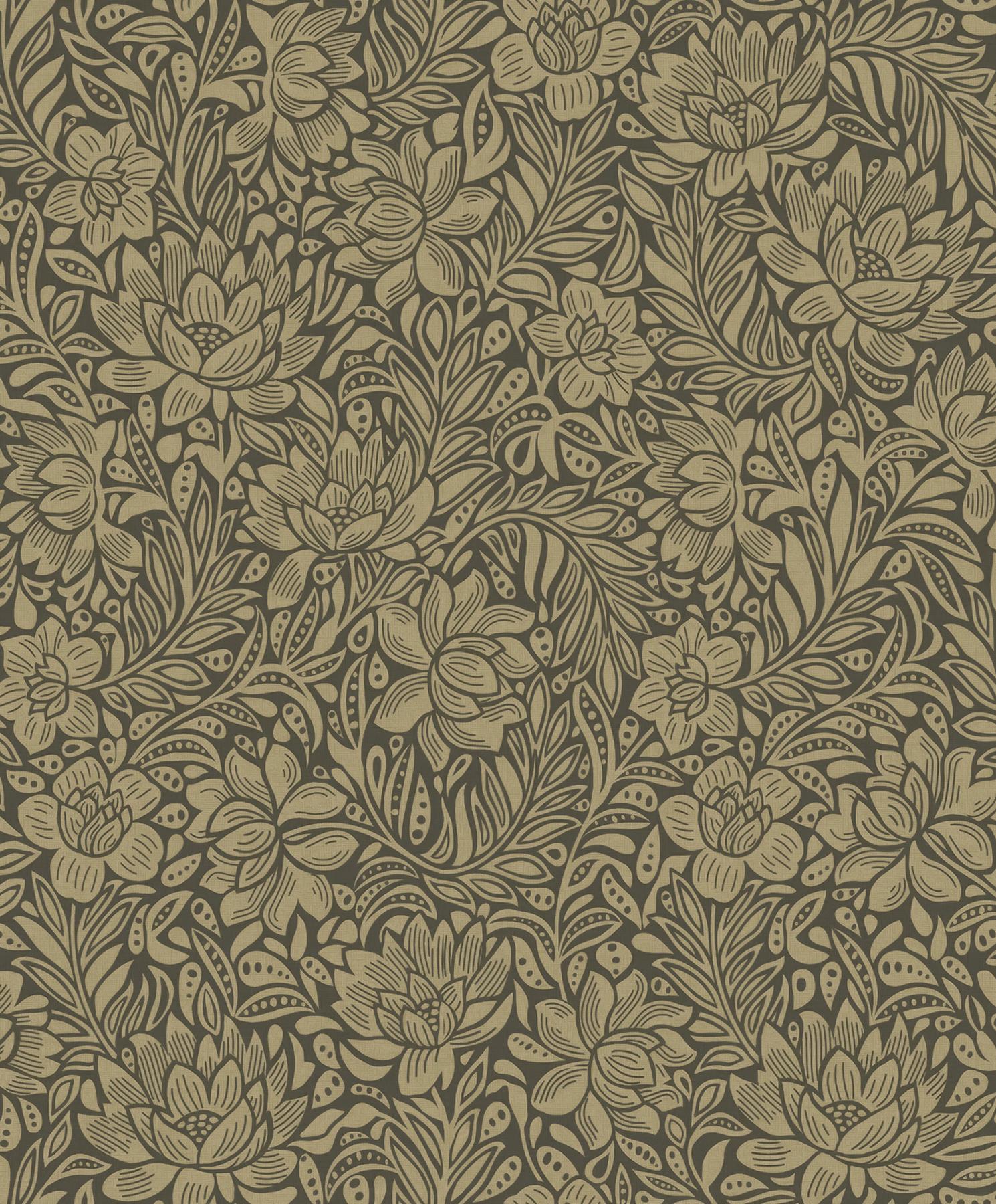 International For Brewster Home Fashions Eijffinger Posy Flowers Chocolate Ochre Wallpaper (Brewster Home Fashions)