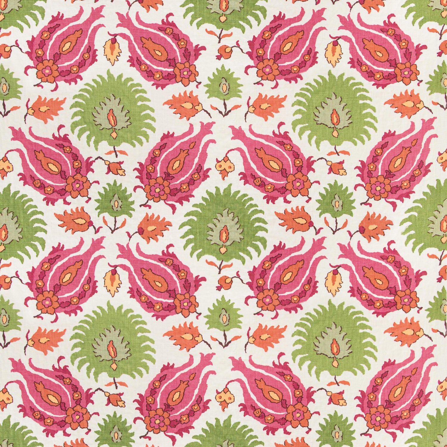 International For Brunschwig & Fils Kashmiri Linen Print Pink/Green Fabric (Brunschwig & Fils)