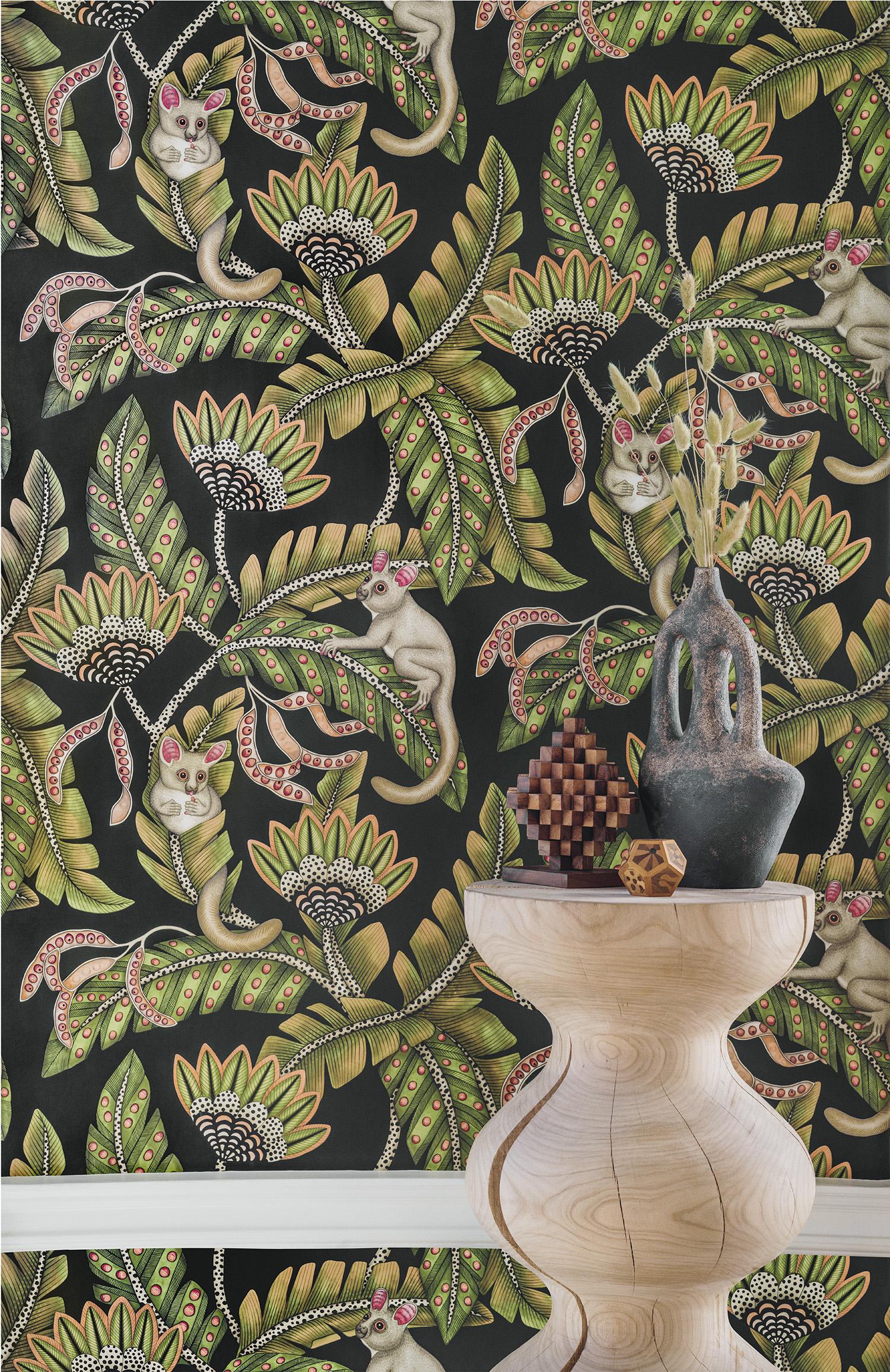 International For Cole & Son Bush Baby Spgrn&Orng/Blck Wallpaper (Cole & Son)