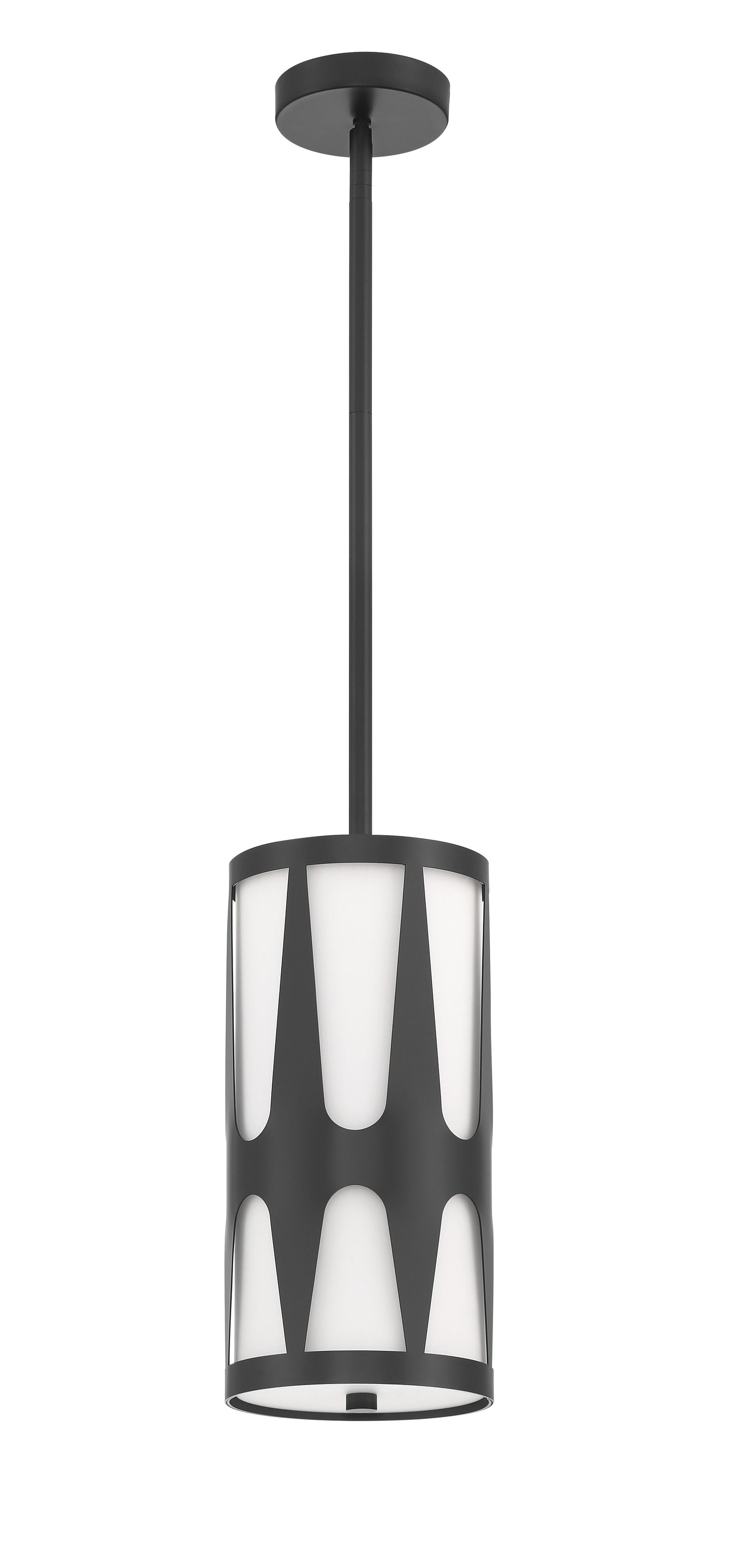 Elevate your space with the strikingly stylish Royston one-light pendant. This fixture showcases an artsy metal pattern overlay, creating an intriguing and eye-catching profile. The inner white glass shade adds a touch of texture, while the glass diffuser helps cast a soft and inviting illumination to its surroundings. Make a statement with the Royston pendant over a kitchen island and transform your space into a stunning showcase of sophistication.