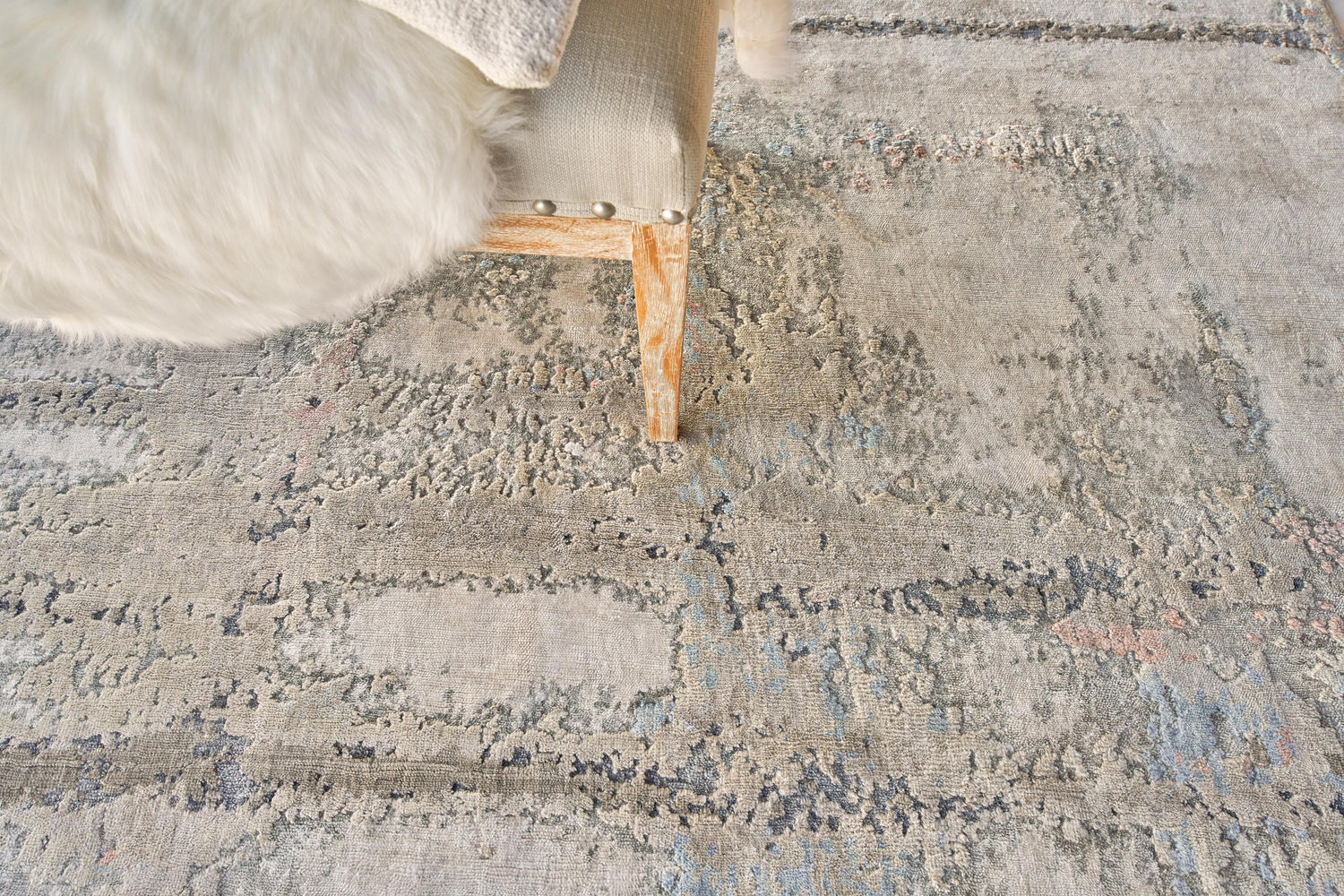 International For Exquisite Rugs Laureno Hand-Knotted Bamboo Silk 4471 Silver Blue 9' X 6' Area Rug (Exquisite Rugs)