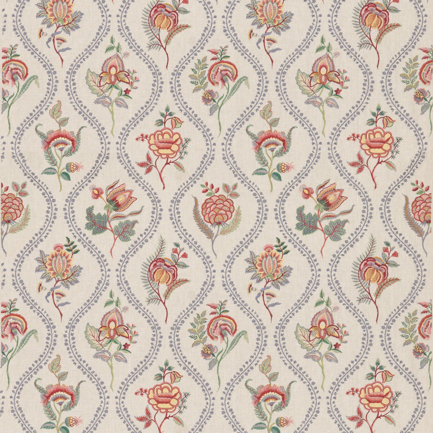 Policy For G P & J Baker Burford Embroidery Blue/Red Drapery Fabric (G P & J Baker)