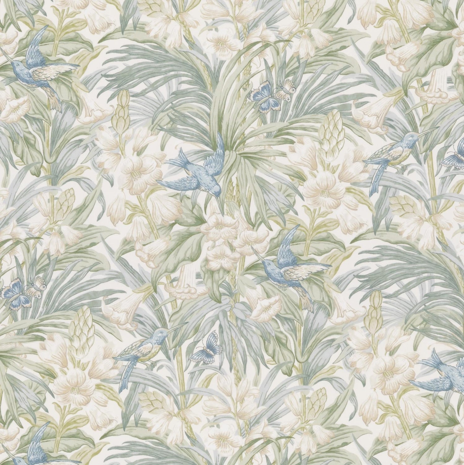 International For G P & J Baker Trumpet Flowers Cotton Blue/Green Fabric (G P & J Baker)