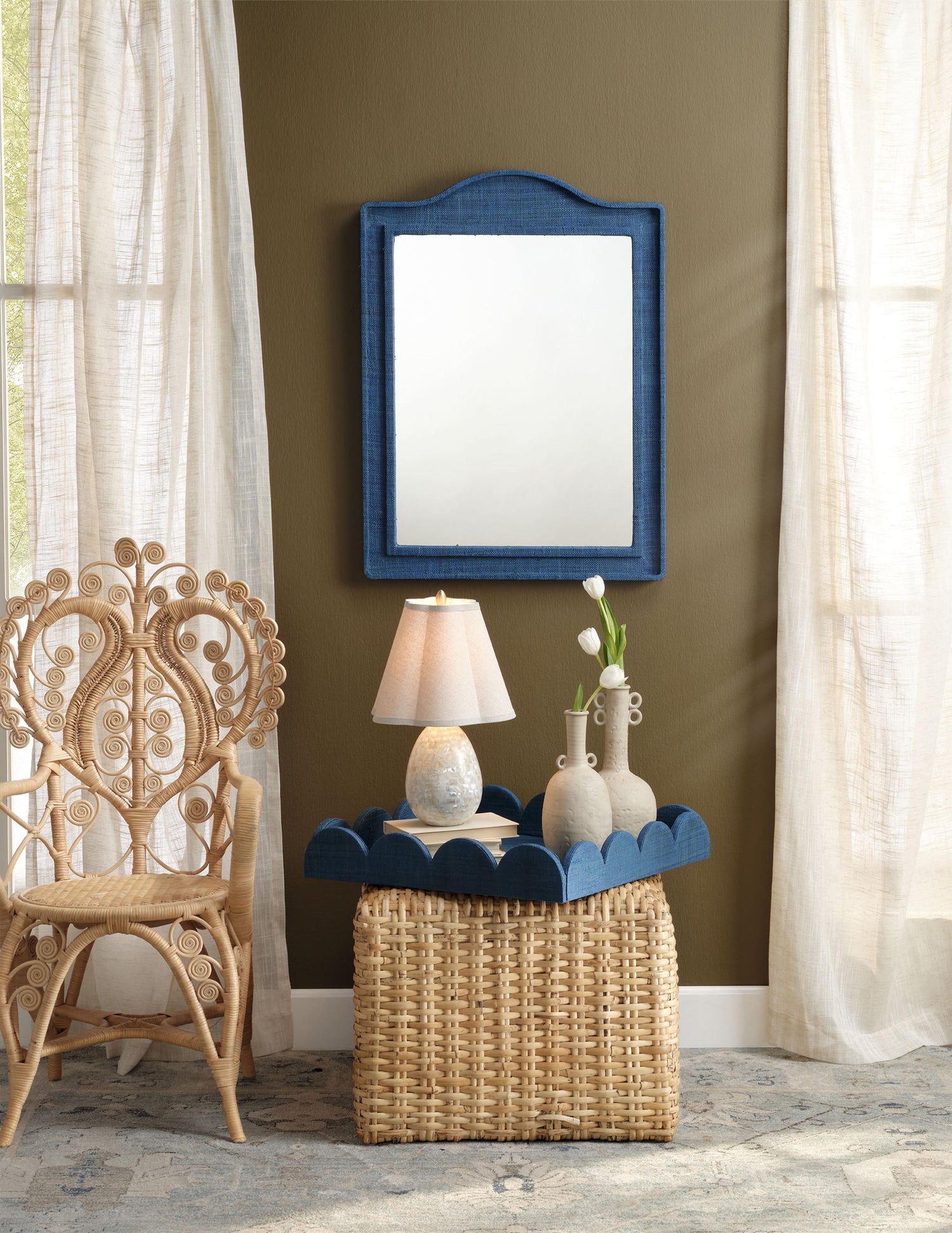 This stunning table lamp takes neutrals and transforms them from everyday to extraordinary. The lamps base is rich, lustrous mother-of-pearl, the hand-trimmed linen shade is softly scalloped, and a solid brass teardrop finial mirrors the luxe bases soft curves. It is expertly crafted and an inspired choice to add light to any room of the home.