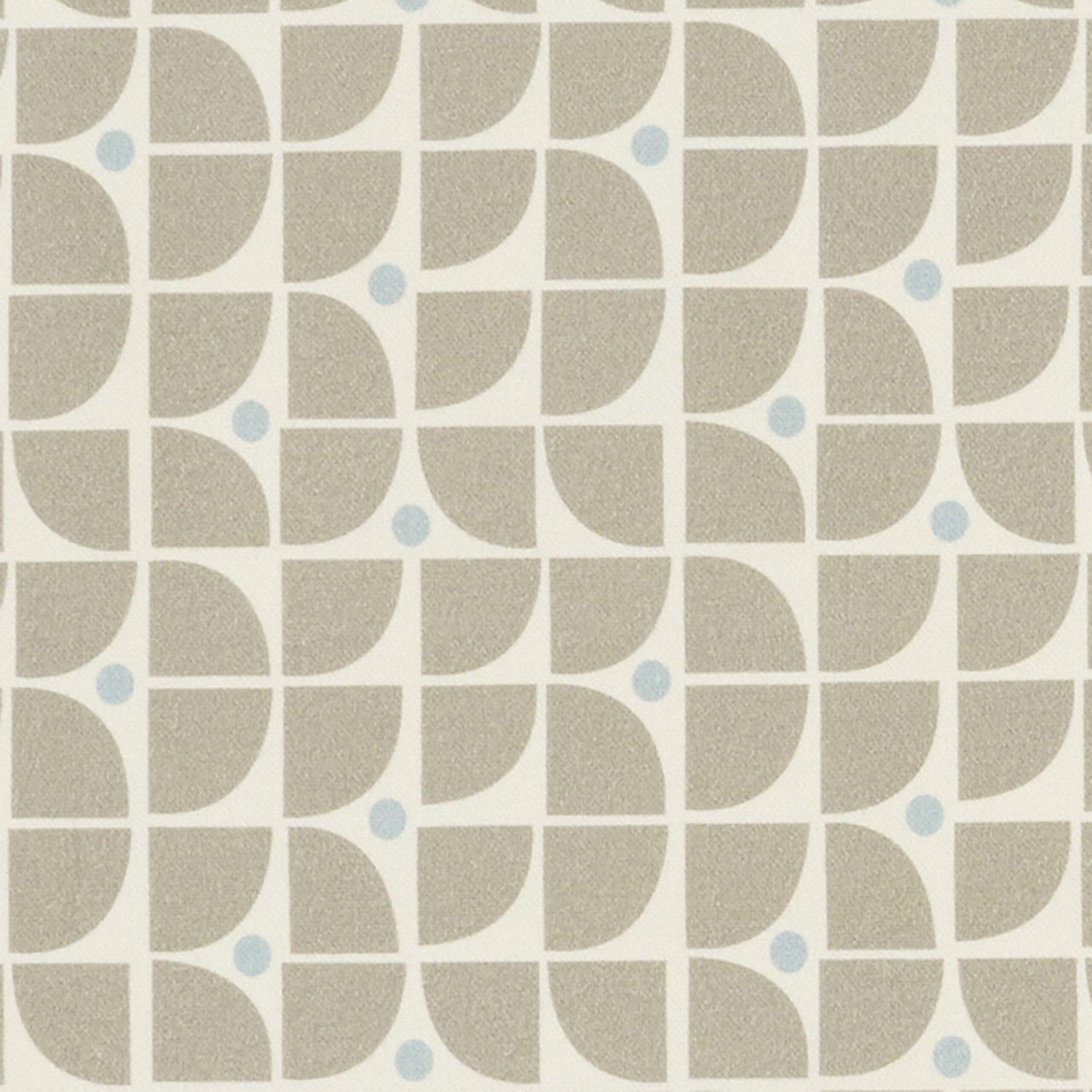 A bold, retro-inspired multi-purpose printed fabric in beige and white with blue dots.