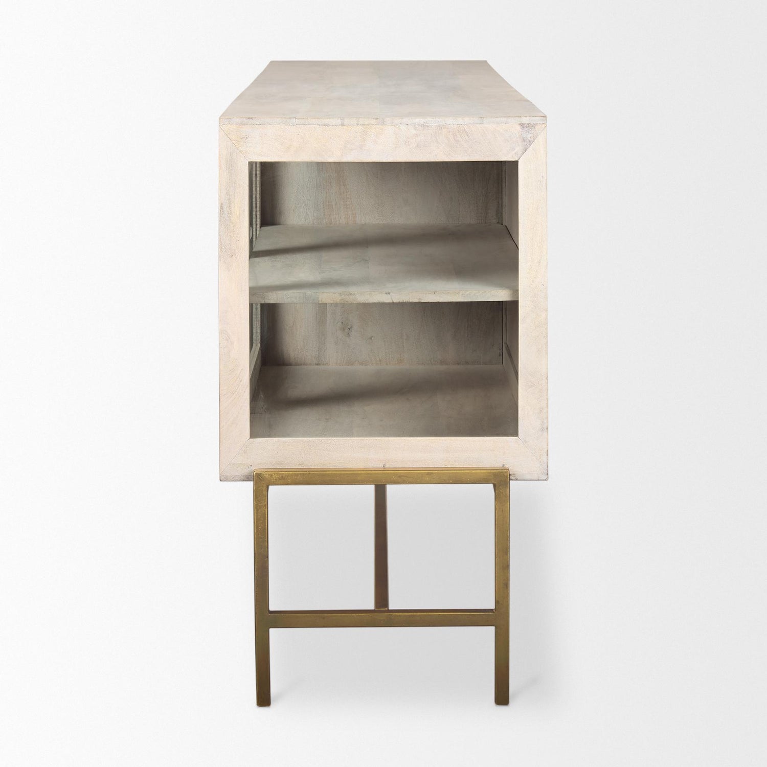 International For Mercana Arelius 70L X 18W X 32H White Wood W/ Gold Metal Base 4 Door Glass Cabinet Sideboard (Mercana)