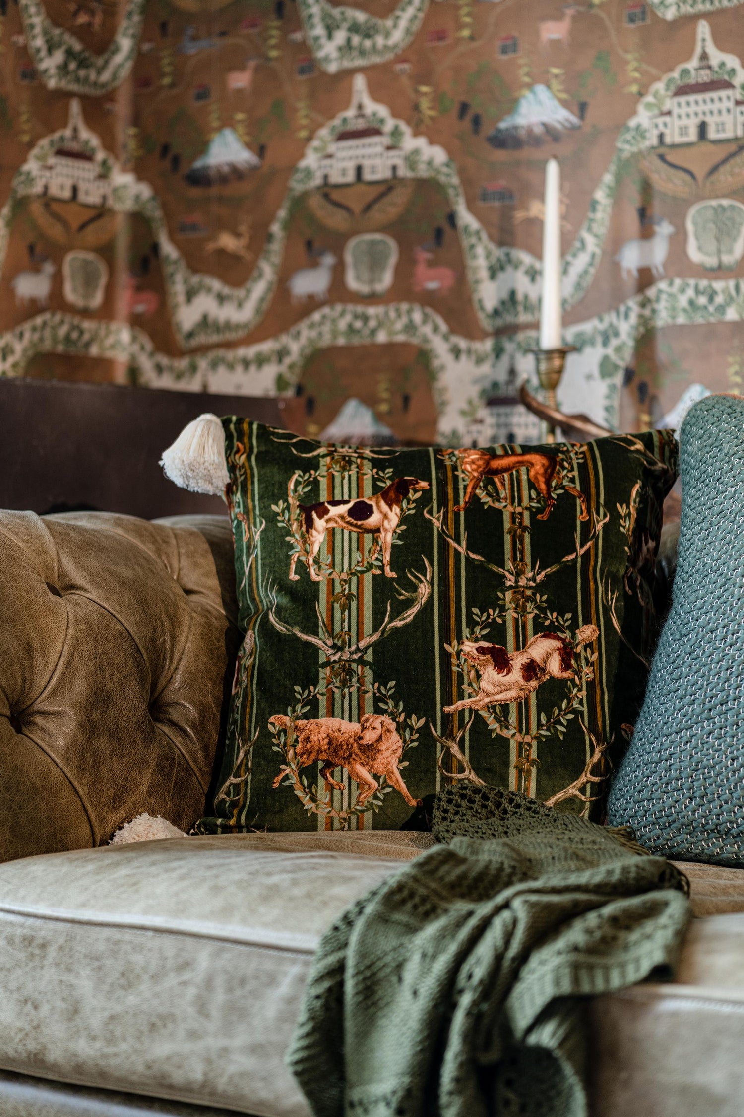 International For Mindthegap Mountain Dogs Cypress Green Brown, Green, Taupe, Yellow Pillow (MindTheGap)