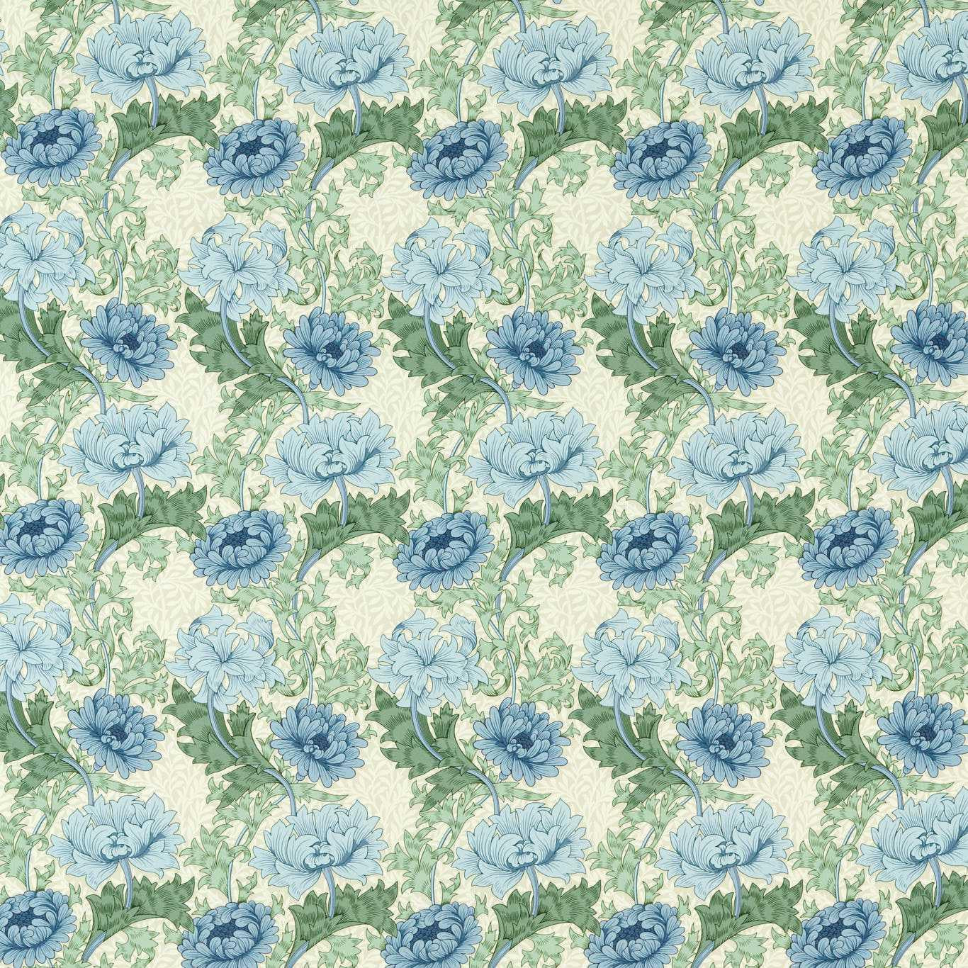 International For Morris & Co Chrysanthemum Indigo/Bayleaf Fabric (Morris & Co)