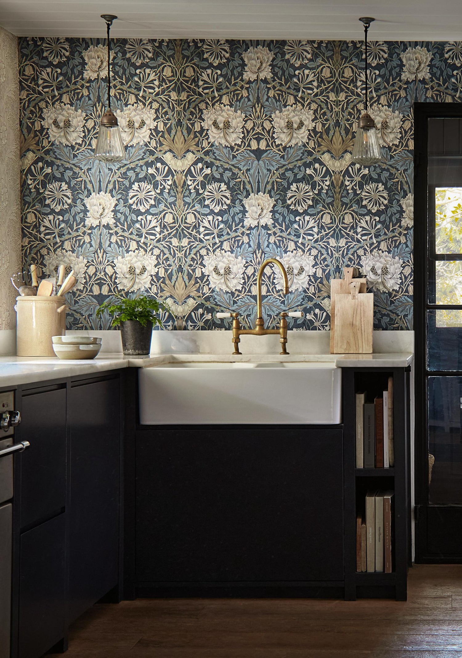 International For Morris & Co Honeysuckle & Tulip Woad/Thyme Wallpaper (Morris & Co)